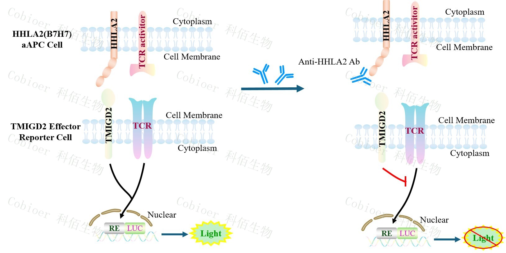 TMIGD2 Effector Reporter Cell 報告基因藥靶模型很好的模擬了體內(nèi) TMIGD2 的信號轉(zhuǎn) 導過程,原理見下圖所示。![]() Figure 1. TMIGD2 Effector Reporter Cell 模型原理圖 |
