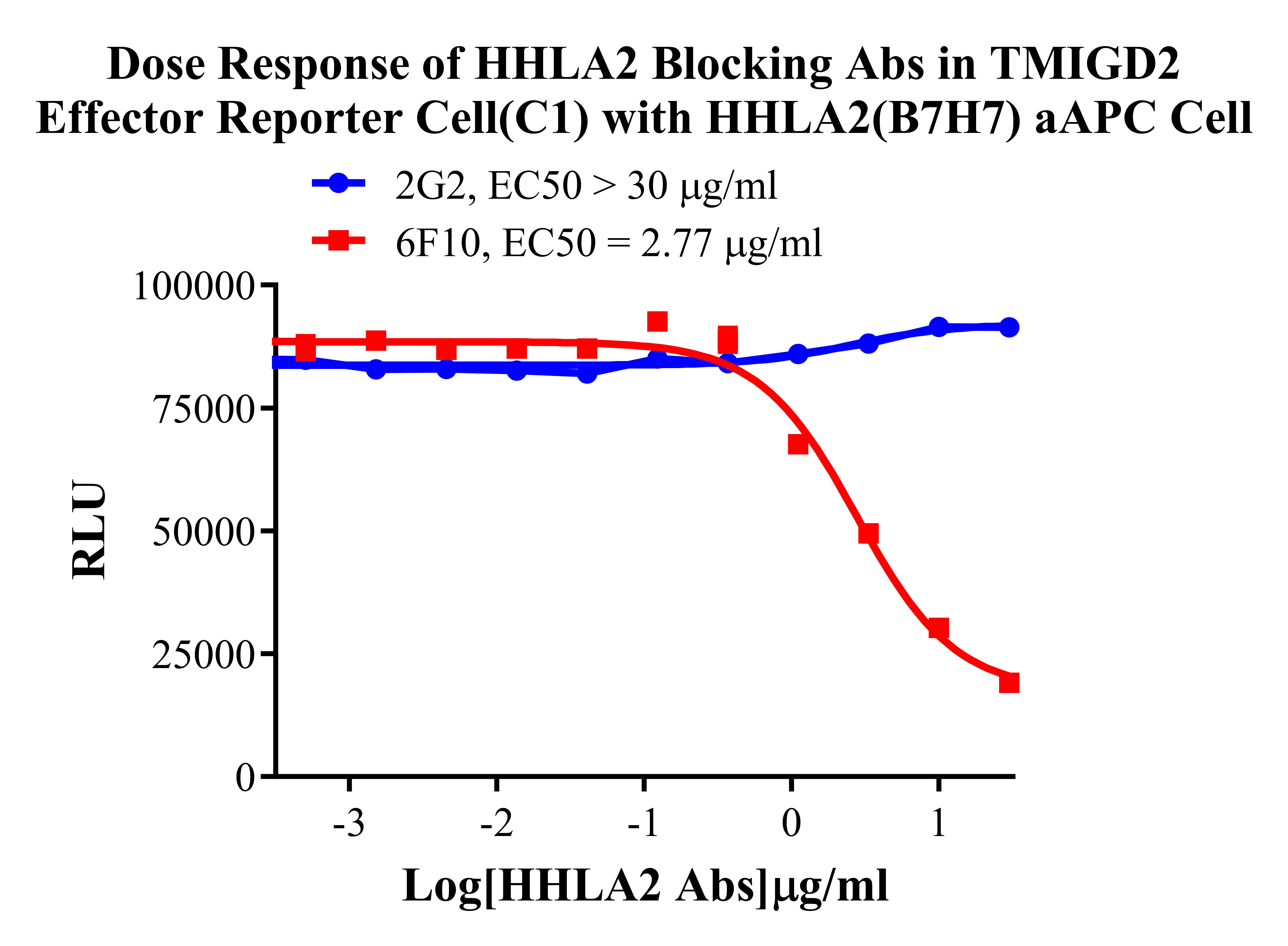 Figure 2. Dose Response of HHLA2 Blocking Abs in TMIGD2 Effector Reporter Cell (C1) with HHLA2(B7H7) aAPC Cell. |