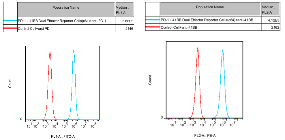 Figure 2. Recombinant PD1 41BB Dual Effector Reporter Cell stably expressing PD-1 and 41BB.