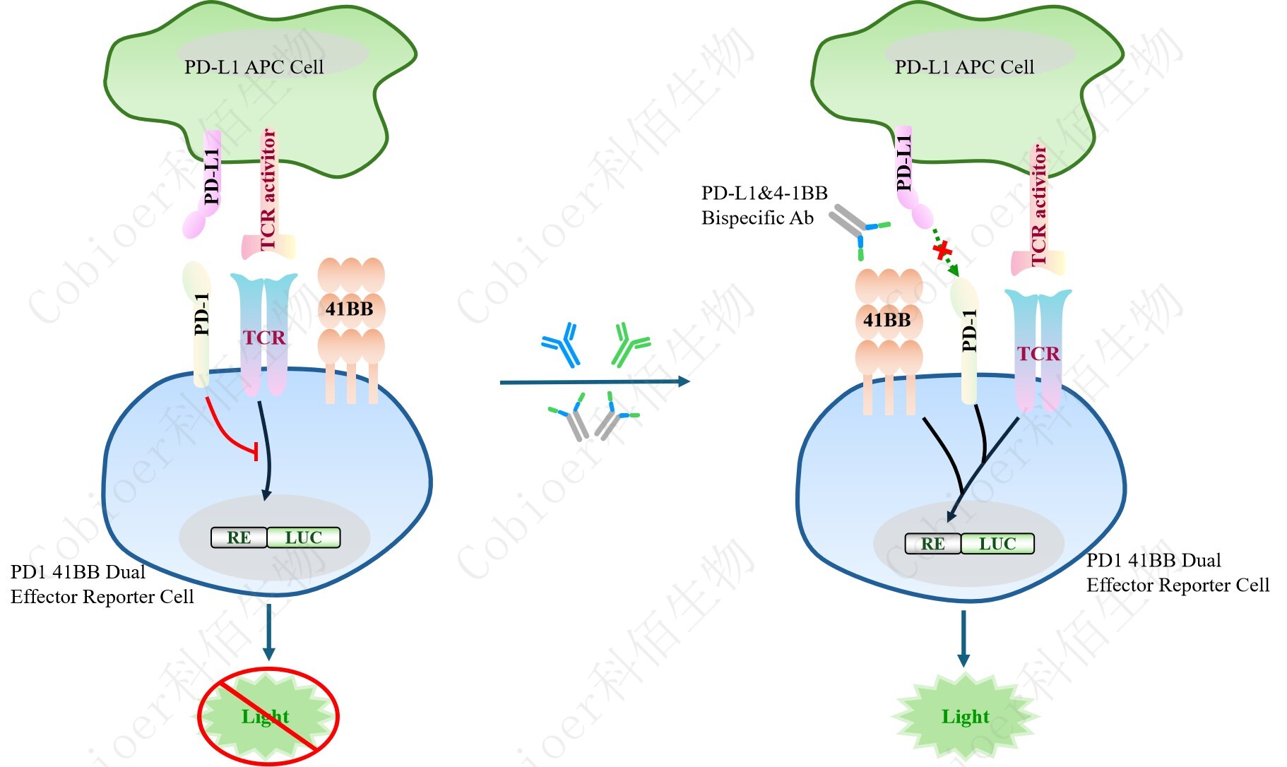 PD1 4-1BB Dual Effector Reporter Cell 細(xì)胞模型原理圖