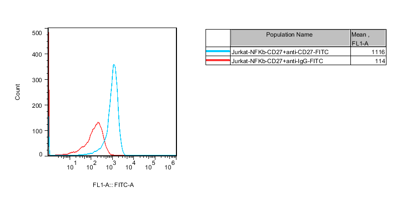 Figure 1. Recombinant CD27/NFκB-Luc/Jurkat stably expressing CD27.