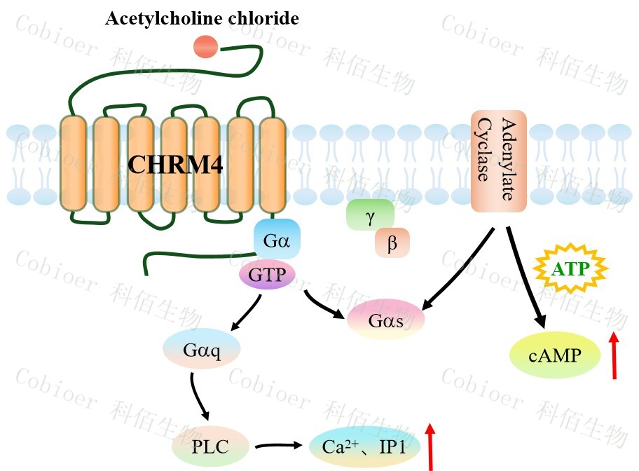 | 毒蕈堿乙酰膽堿受體(MAChRs,簡稱 M 受體)參與中樞神經(jīng)系統(tǒng)的運(yùn)動控制、體溫 調(diào)節(jié)、心血管調(diào)節(jié)和記憶,介導(dǎo)周圍神經(jīng)系統(tǒng)的平滑肌收縮、腺體分泌和心率、調(diào)節(jié)心肌 收縮力。CHRM4 作為 Gi/o 偶聯(lián)型毒蕈堿受體,中樞神經(jīng)系統(tǒng)高表達(dá),其內(nèi)源性配體乙酰 膽堿(ACh)激活后優(yōu)先通過 Gi/oα亞基抑制腺苷酸環(huán)化酶,同時釋放 Gβγ二聚體。 | |