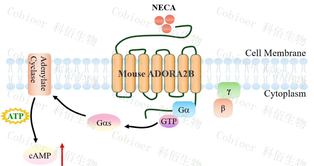cAMP 在 G 蛋白偶聯(lián)受體(GPCR)信號(hào)轉(zhuǎn)導(dǎo)中是一種關(guān)鍵的第二信使。當(dāng)配體結(jié)合 到 GPCR,構(gòu)象發(fā)生變化,激活受體接著激活 G 蛋白,Gs 的激活導(dǎo)致腺苷酸環(huán)化酶調(diào)控 cAMP 的升高。