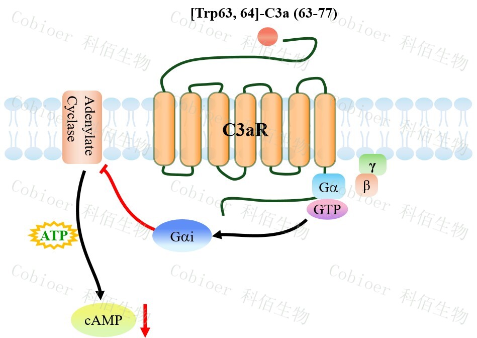 C3aR 是 C3a 的唯一高親和力受體,屬于 G 蛋白偶聯(lián)受體(GPCR)B 家族,具有獨(dú)特 的 7 次跨膜結(jié)構(gòu)及超長胞外第二環(huán)(ECL2),介導(dǎo)配體特異性識別。C3aR 被配體 C3a 激 活后,通過 Gi/Gq 蛋白雙耦聯(lián)觸發(fā)下游信號。Gi 通路抑制 cAMP 生成并激活 PI3K-Akt 促 細(xì)胞存活與遷移;Gq 通路則激活 PLCβ—IP3/DAG/PKC—NF-κB 級聯(lián),介導(dǎo)鈣動(dòng)員與炎癥 基因轉(zhuǎn)錄。其反應(yīng)呈現(xiàn)雙效性:低濃度時(shí)促進(jìn)組織修復(fù)、免疫調(diào)節(jié);高濃度時(shí)驅(qū)動(dòng)過敏反 應(yīng)、神經(jīng)炎癥及腫瘤免疫抑制,且病理效應(yīng)與濃度和組織微環(huán)境密切相關(guān)。