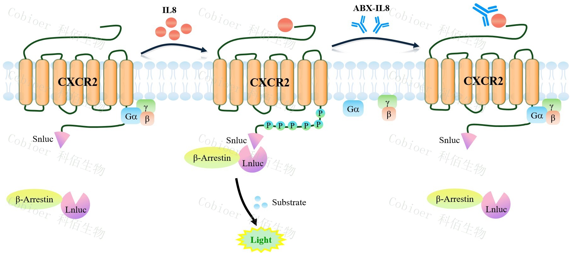 CXCR2 β-Arrestin CHO 細胞模型原理圖