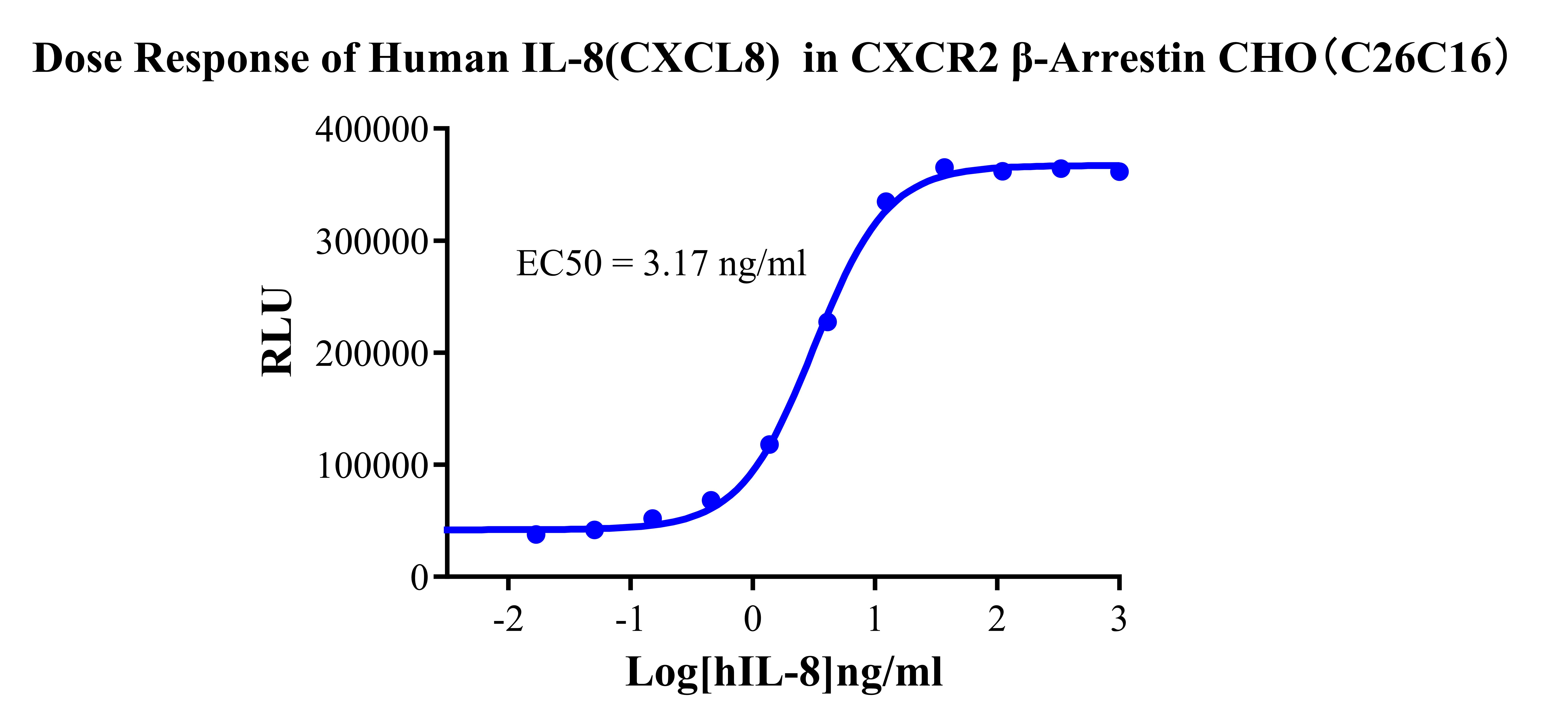 Figure 3.Dose response of Human IL-8(CXCL8) in CXCR2 β-Arrestin CHO (C26C16).