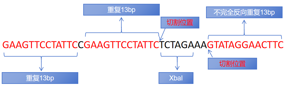 FRT: FRT(Flp Recombination Target)是Flp的識(shí)別位點(diǎn),全長(zhǎng)48bp,由3個(gè)13bp的反向回文序列和8bp的間隔序列共同組成。與間隔序列相鄰的兩個(gè)反向回文序列是Flp重組酶的識(shí)別和結(jié)合區(qū)域,間隔序列是重組發(fā)生的區(qū)域,也決定了整個(gè)序列的方向。