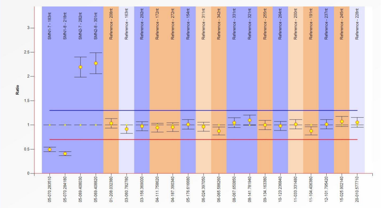 Description | Spinal muscular atrophy (SMA) is an autosomal recessive neuromuscular disease characterized by progressive muscle weakness and atrophy caused by the degeneration of motor neurons in the anterior horn of the spinal cord. The disease is the number one fatal genetic disease in infancy, and it is estimated that there is one case in every 10,000 live births; the carrier rate of the general population is about 1/50, and the carrier rate of the domestic population is about 1/42. |