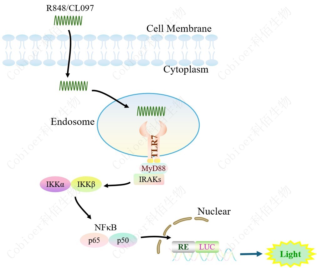 TLR7 NFκB-Luc HEK293 細胞模型原理圖