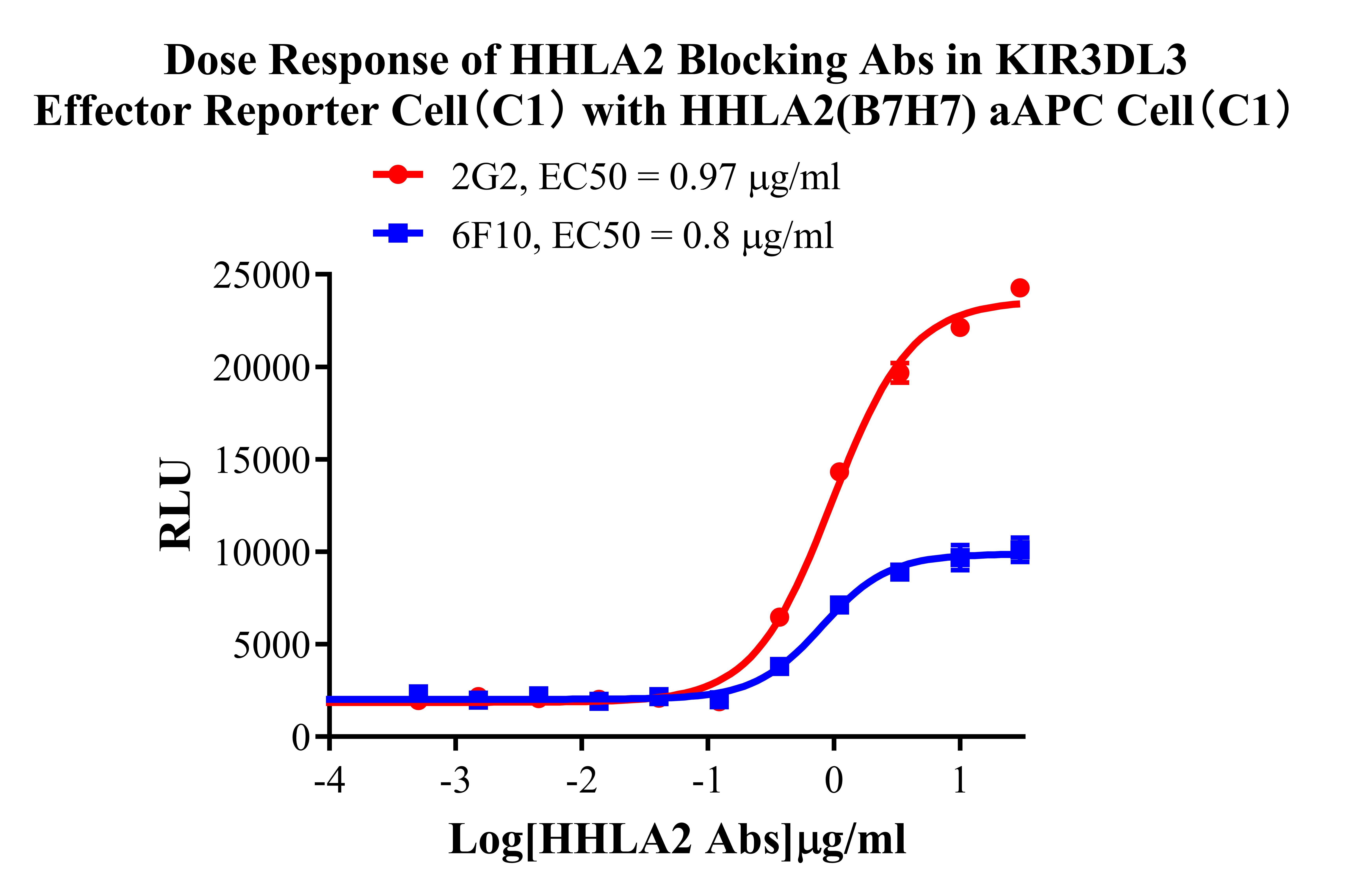 Figure 2. Dose Response of HHLA2 Blocking Abs in KIR3DL3 Effector Reporter Cells (C1)With HHLA2(B7H7) aAPC Cell(C1).