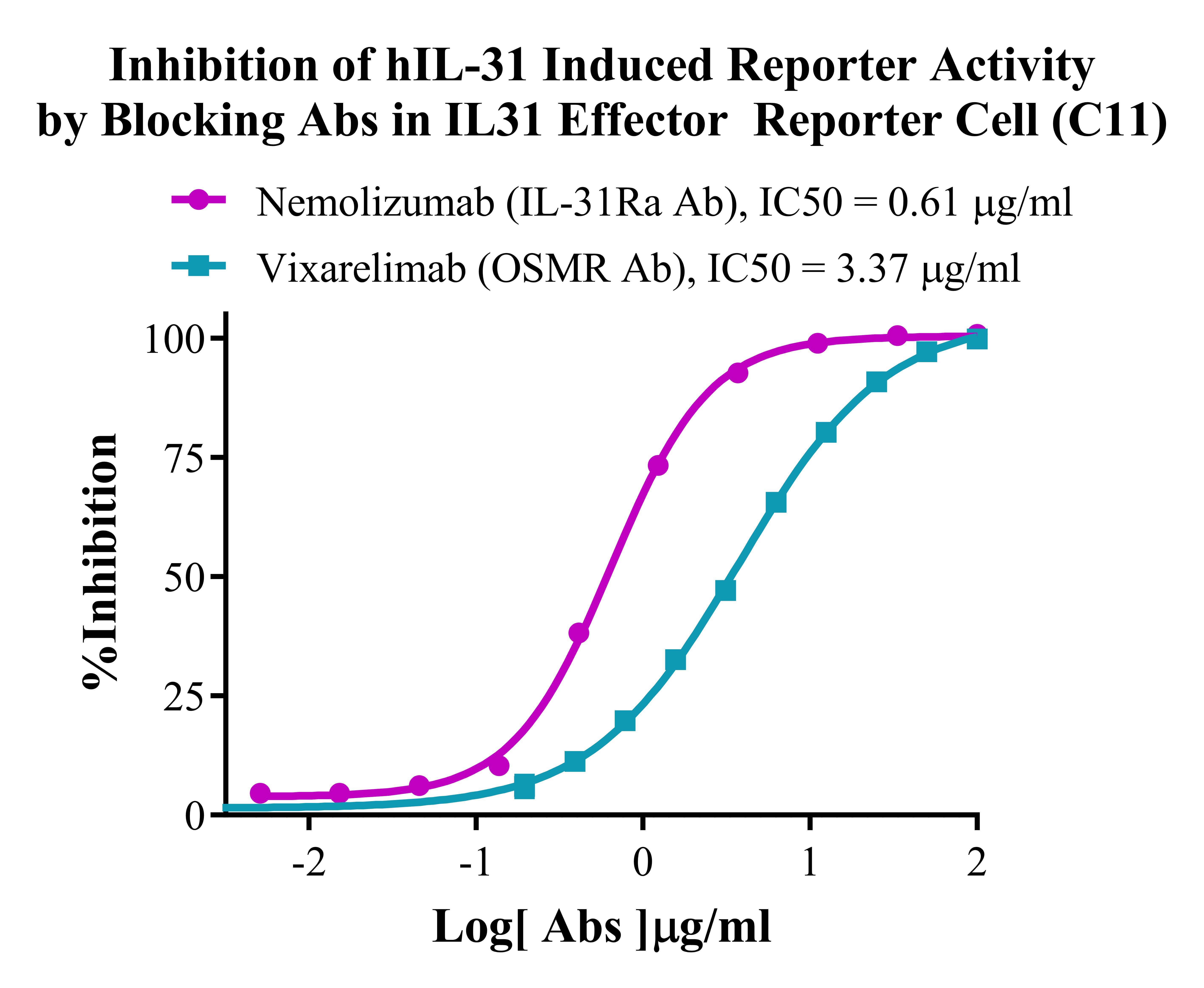 Figure 4. Inhibition of hIL-31 Induced Reporter Activity By Blocking Abs in IL31 Effector Reporter Cells (C11). |