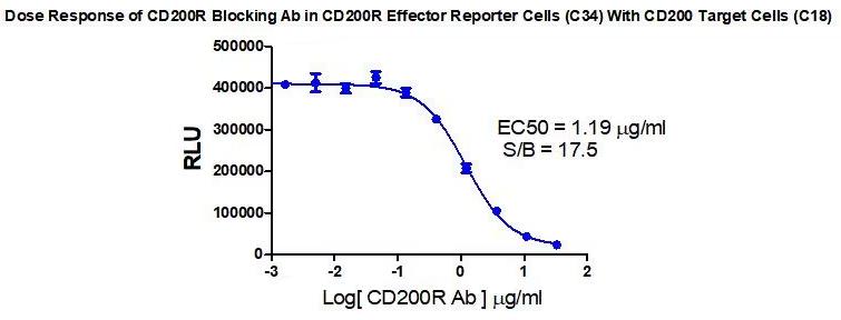 Figure 1. Dose Response of CD200R Blocking Ab in CD200R Effector Reporter Cells (C34) With CD200 Target cells (C18).