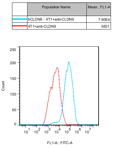 Figure 1. Recombinant hClaudin9(CLDN9)/4T1 stably expressing CLDN9. |