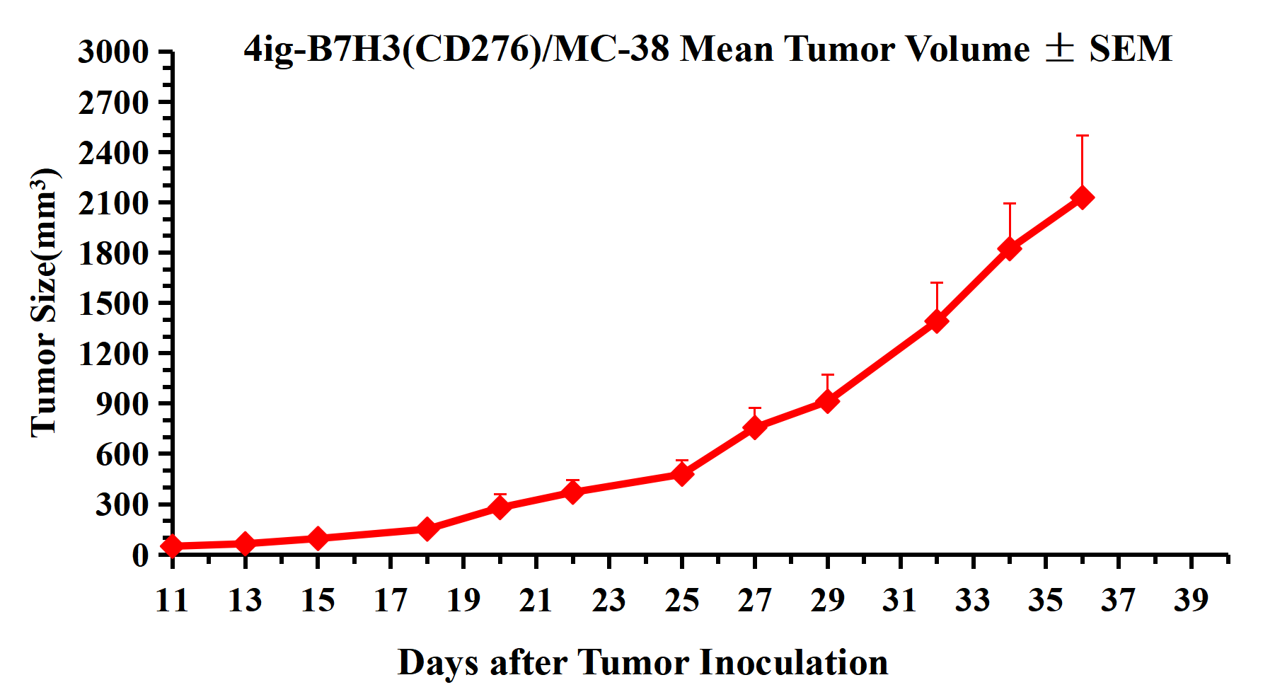 Figure 3.4ig-B7H3(CD276)/MC-38 Mean Tumor Volume ± SEM .