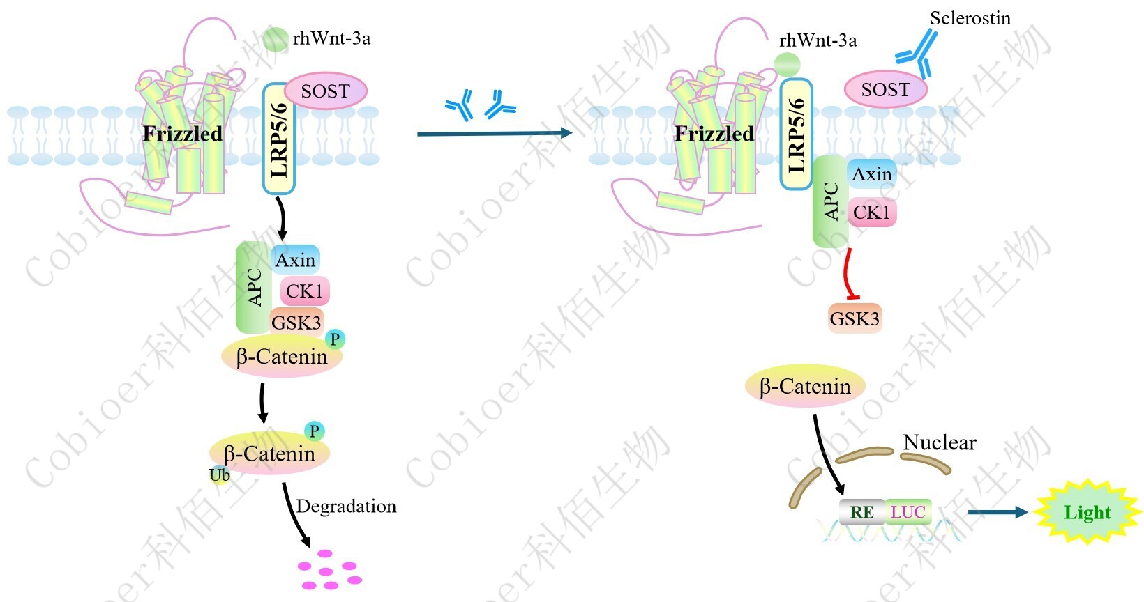 硬化蛋白(SOST)是一種主要在骨細胞中表達的分泌糖蛋白。SOST 和 Wnt 蛋白通過(guò) 競爭性結合 LRP5/6,抑制 Wnt 信號傳導,抑制新骨的形成和生長(cháng)。