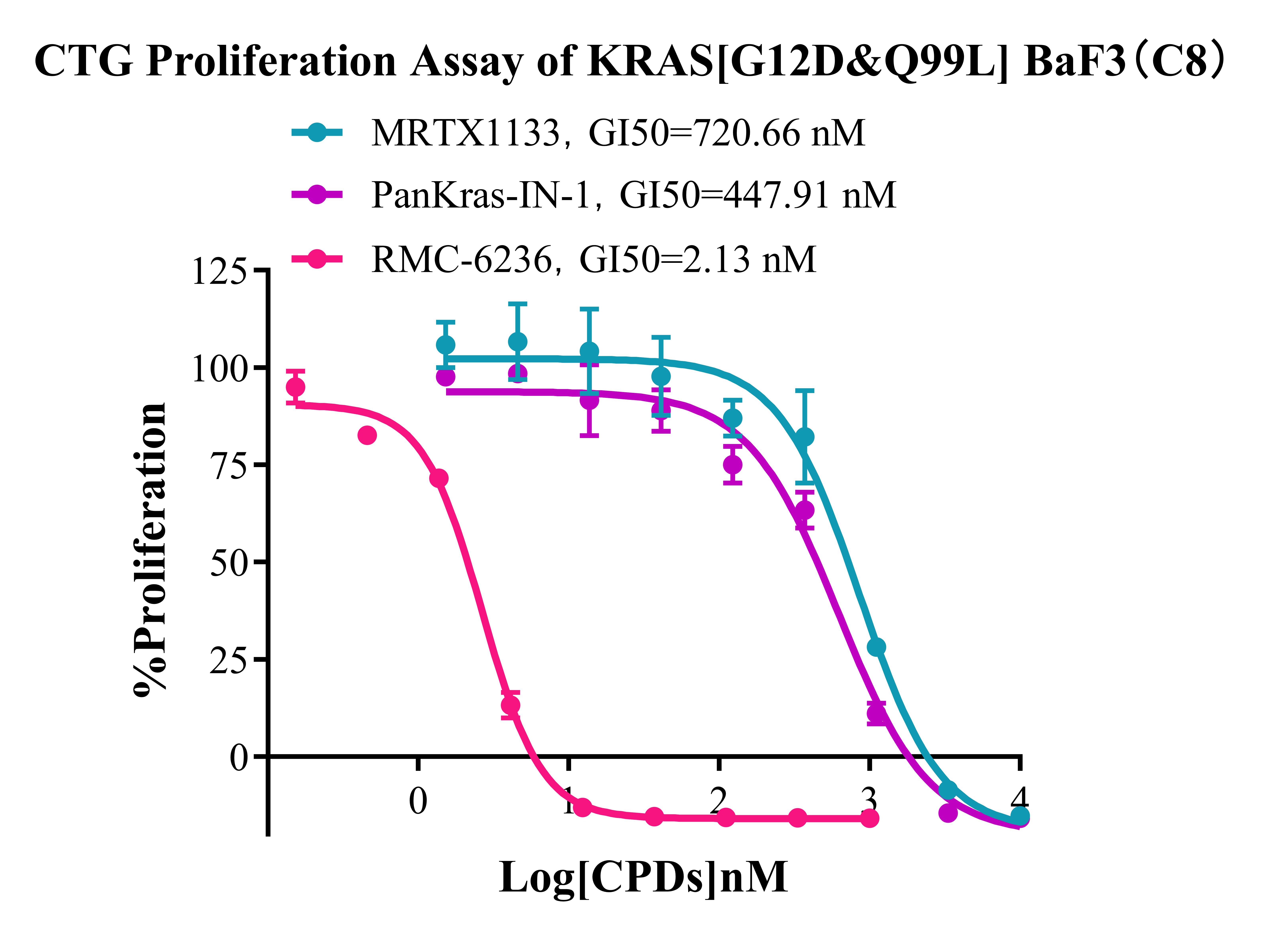 3. Anti-proliferation assay Figure 4. CTG Proliferation Assay of KRAS [G12D&Q99L] BaF3(C8). |