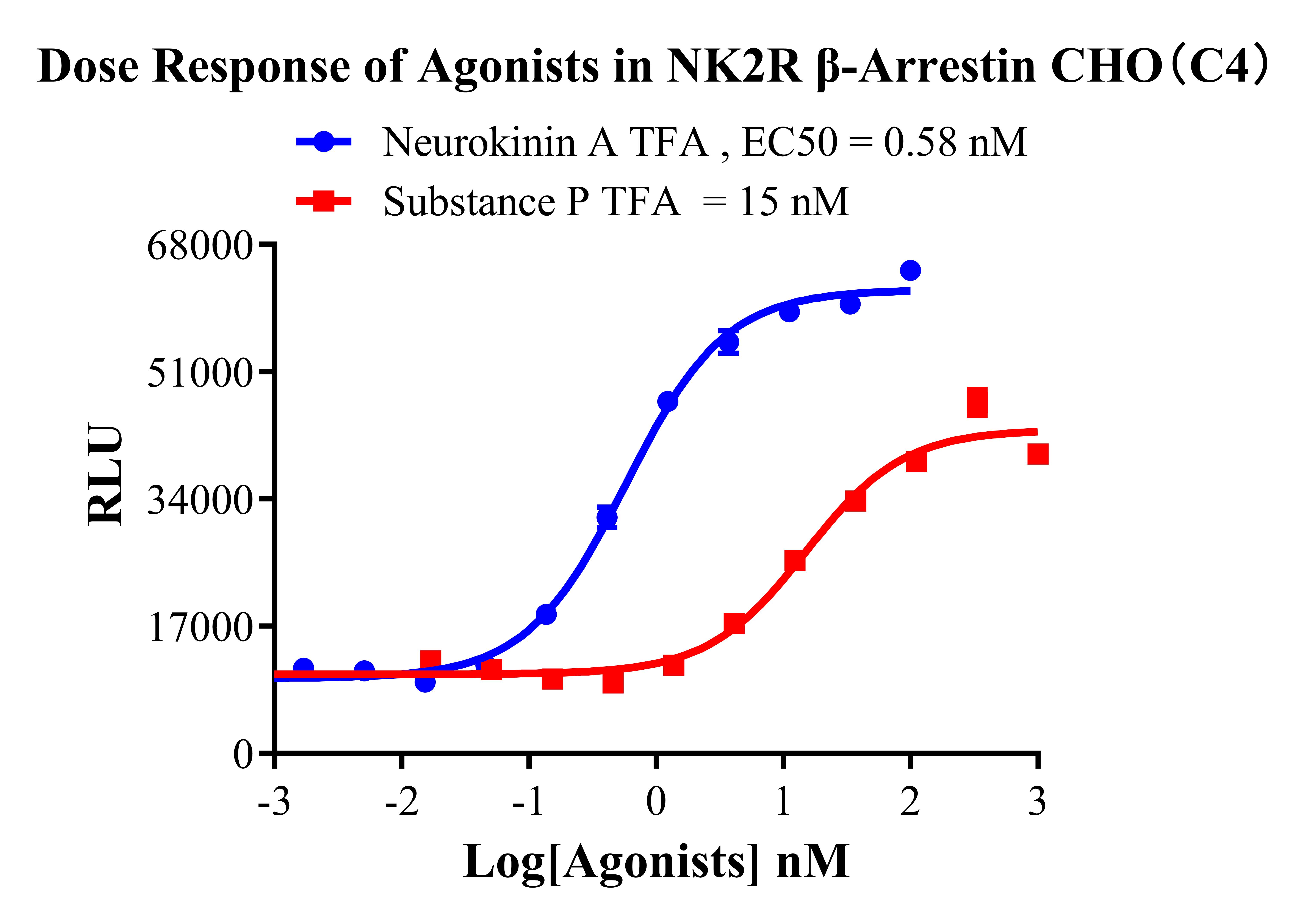 速激肽(Tachykinins )是分布在哺乳動(dòng)物中樞和周?chē)窠?jīng)系統中的一類(lèi)神經(jīng)肽。速激 肽物質(zhì) P(SP)、神經(jīng)激肽 A(NKA)和神經(jīng)激肽 B(NKB)共享一個(gè)保守的 C 端基序, 對速激肽受體(NK1R、NK2R 和 NK3R)的激活至關(guān)重要。NKA 優(yōu)先激活與 Gα偶聯(lián)的 NK2R,而 SP 和 NKB 分別優(yōu)先結合 NK1R 和 NK3R。三種速激肽都能夠在所有速激肽受 體類(lèi)型中表現為完全激動(dòng)劑。 NK2R 是一種 GPCR,普遍存在于中樞和周?chē)窠?jīng)系統,然而,有研究發(fā)現,NK2R 與 血紅蛋白 A1c(HbA1c)水平顯著(zhù)相關(guān)。HbA1c 是評估長(cháng)期血糖控制的重要指標,表明 NK2R 可能在糖代謝調控中發(fā)揮關(guān)鍵作用。 |