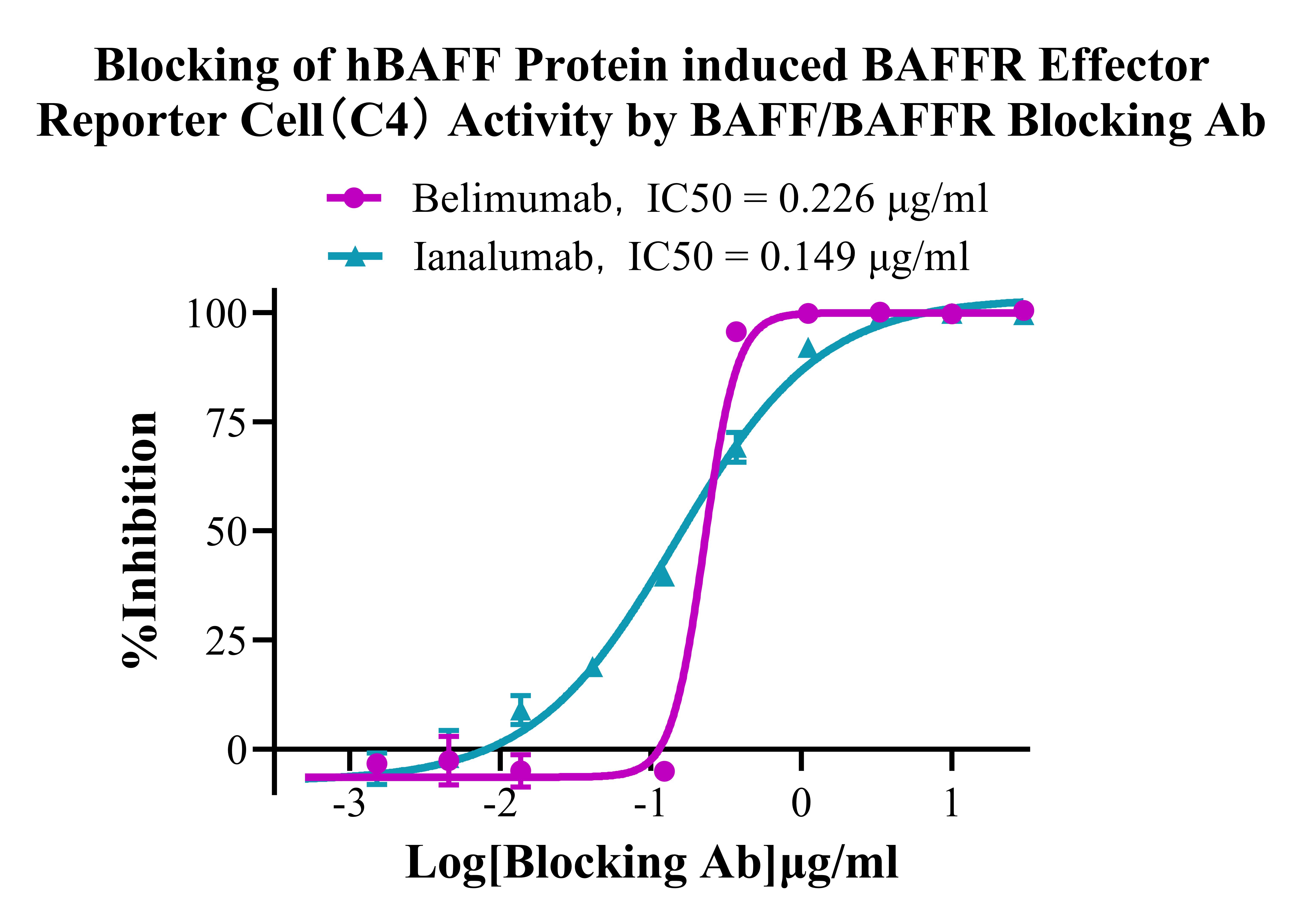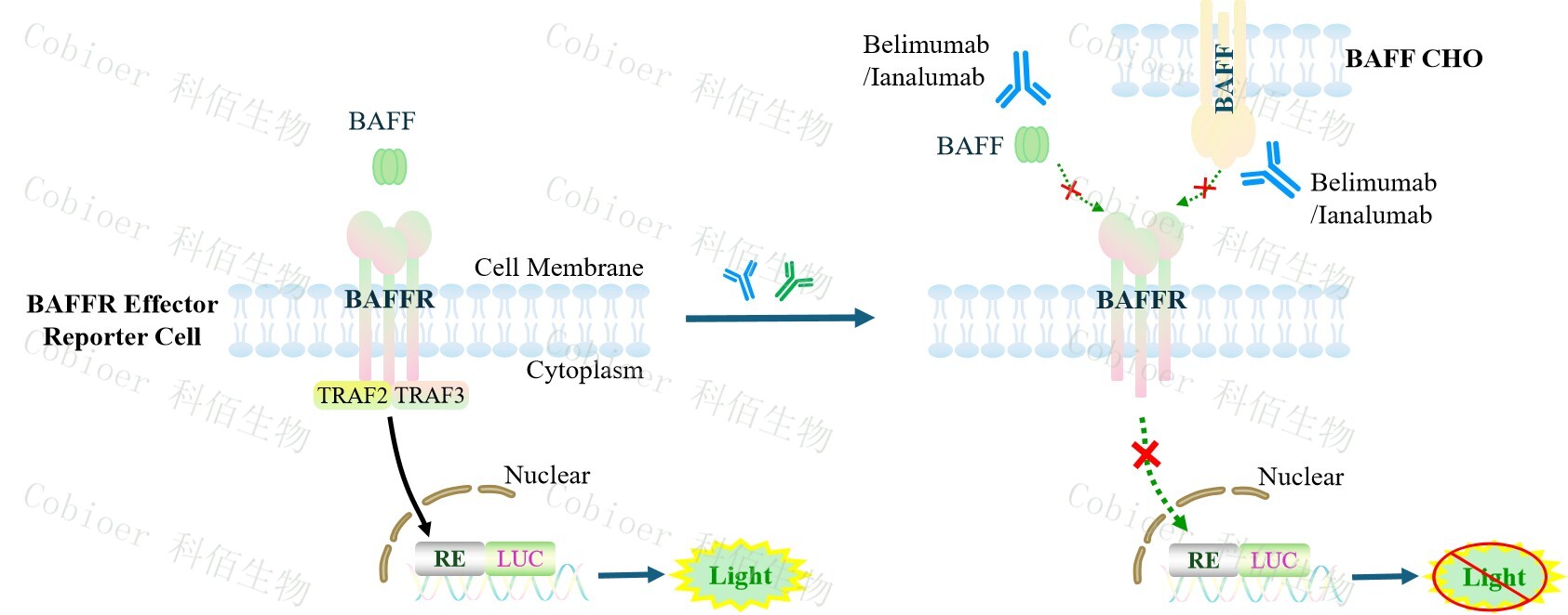 BAFFR Effector Reporter Cell 報告基因藥靶模型很好的模擬了體內 BAFF 的信號轉導過(guò)程,原理見(jiàn)下圖所示。![]() Figure 1. BAFFR Effector Reporter Cell 細胞模型原理圖 |