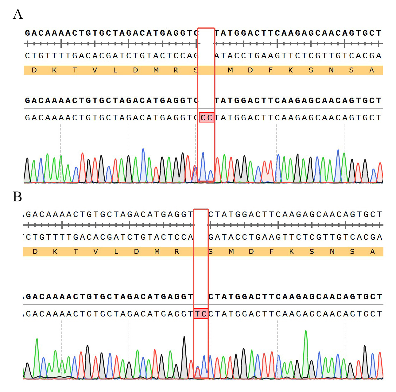 ![]() Figure 3. WB of TCRαβ KO NFAT-Luc Jurkat. ![]() Figure 4. TCRαβ KO NFAT-Luc Jurkat在 NFAT-Luc Jurkat細(xì)胞上敲除 TCRαβ . ![]() Figure 5. TRAC KO 的測(cè)序結(jié)果 A:chr14-22547665--CC(TRAC:p.M54Lfs*57) TRAC(ENST00000611116.2):c.158_159insCC