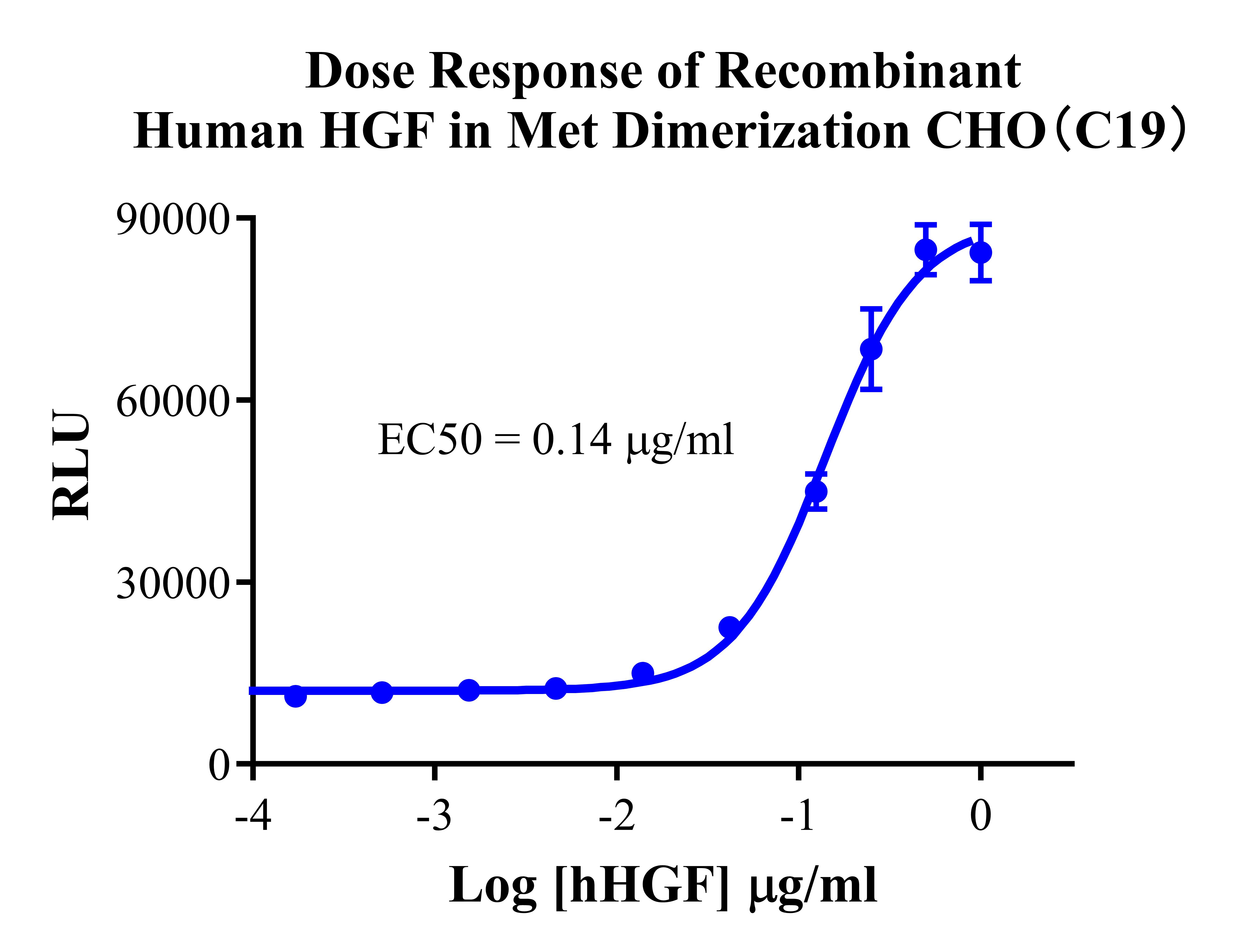 ![]() Figure 2. Recombinant MET Dimerization CHO stably expressing MET. ![]() Figure 3. Dose Response of Recombinant Human HGF in Met Dimerization CHO(C19).