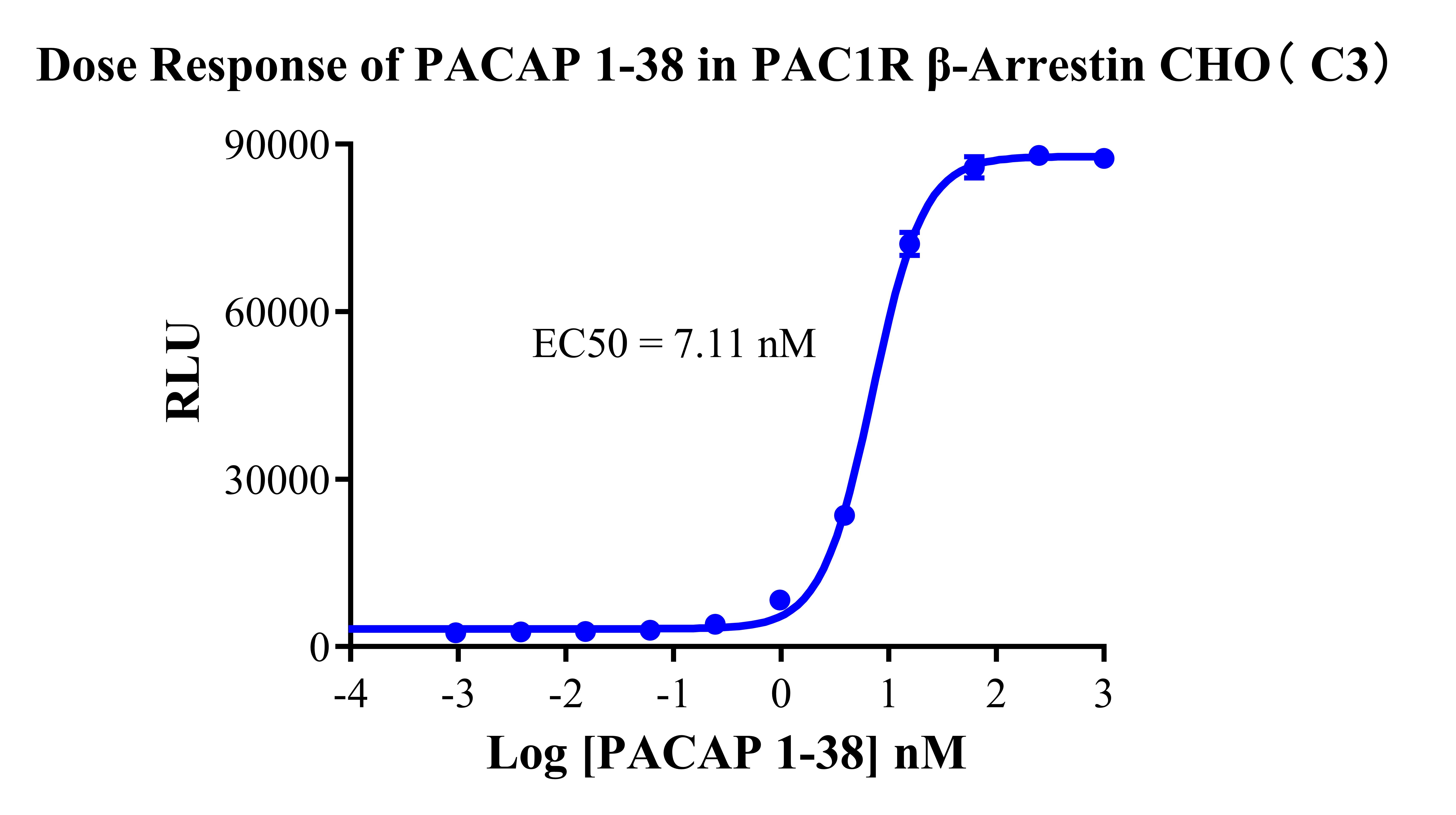V. Representative Data![]() Figure 2. Recombinant PAC1R β-Arrestin CHO stably expressing PAC1R. ![]() Figure 3.Dose Response of PACAP 1-38 in PAC1R β-Arrestin CHO( C3). ![]() Figure 4.Inhibition of PACAP 1-38 induced β-Arrestin Recruitment by PACAP38 neutralization Ab in PAC1R β-Arrestin CHO(C3). |