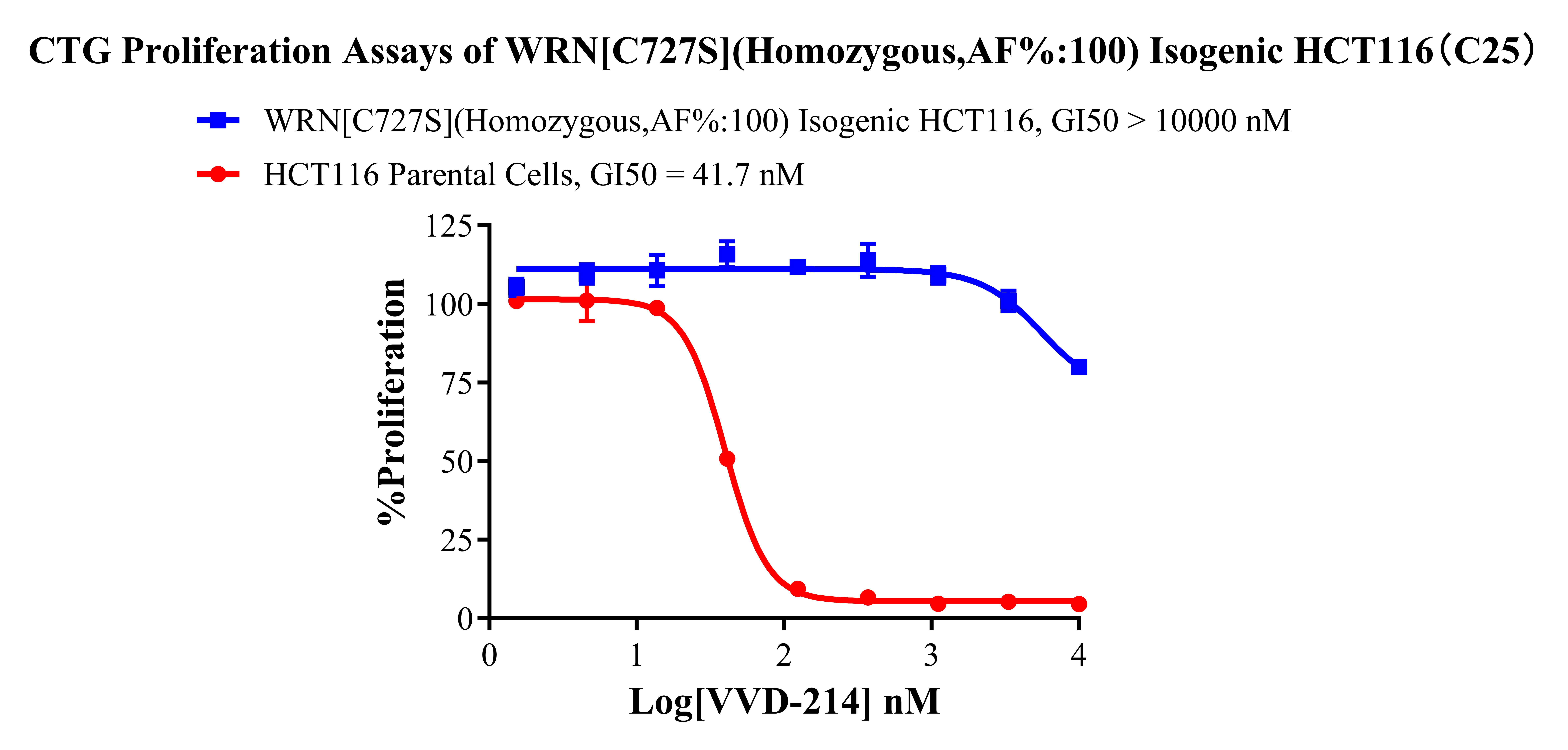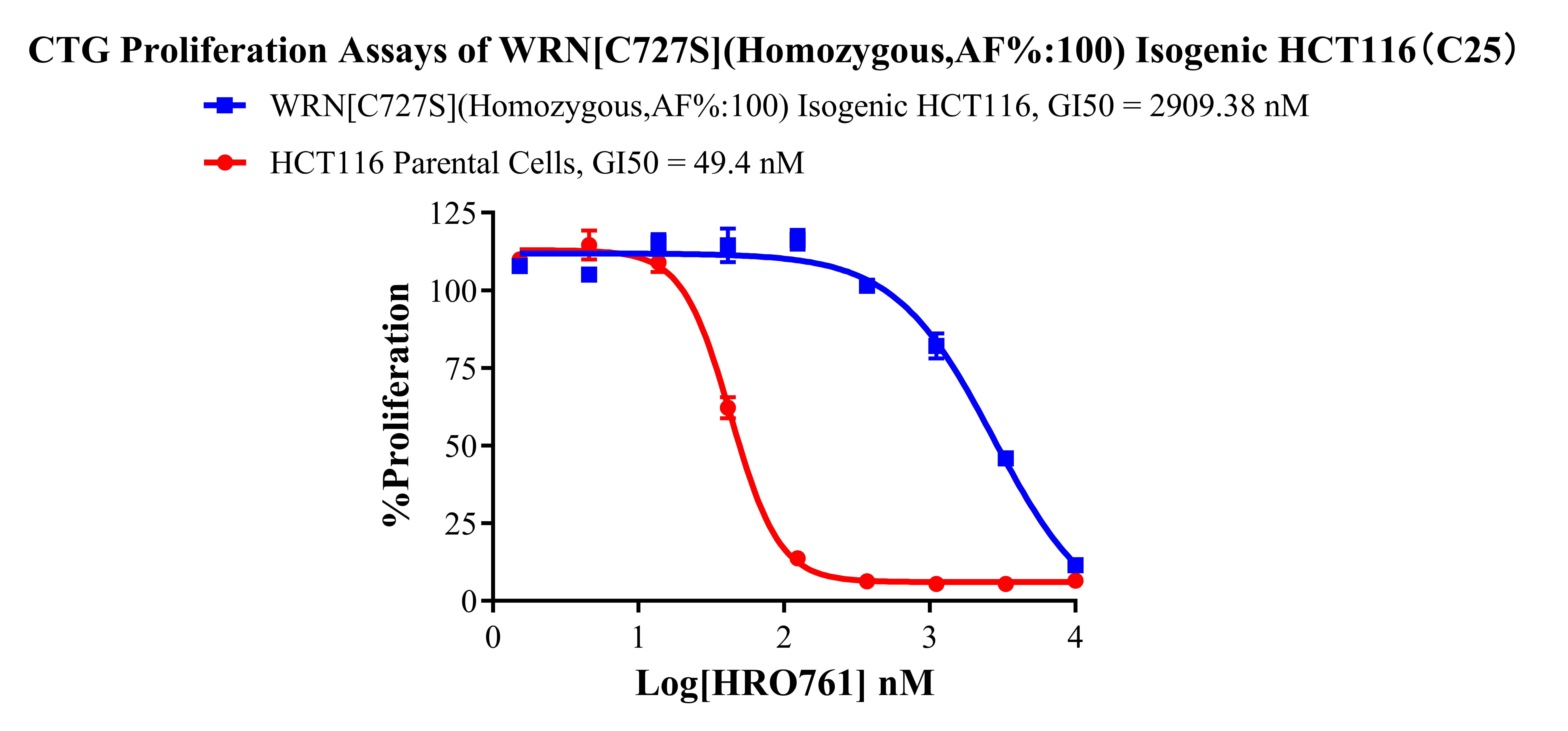 Figure 4. CTG Proliferation Assays of WRN[C727S](Homozygous,AF%:100)Isogenic HCT116(C25).