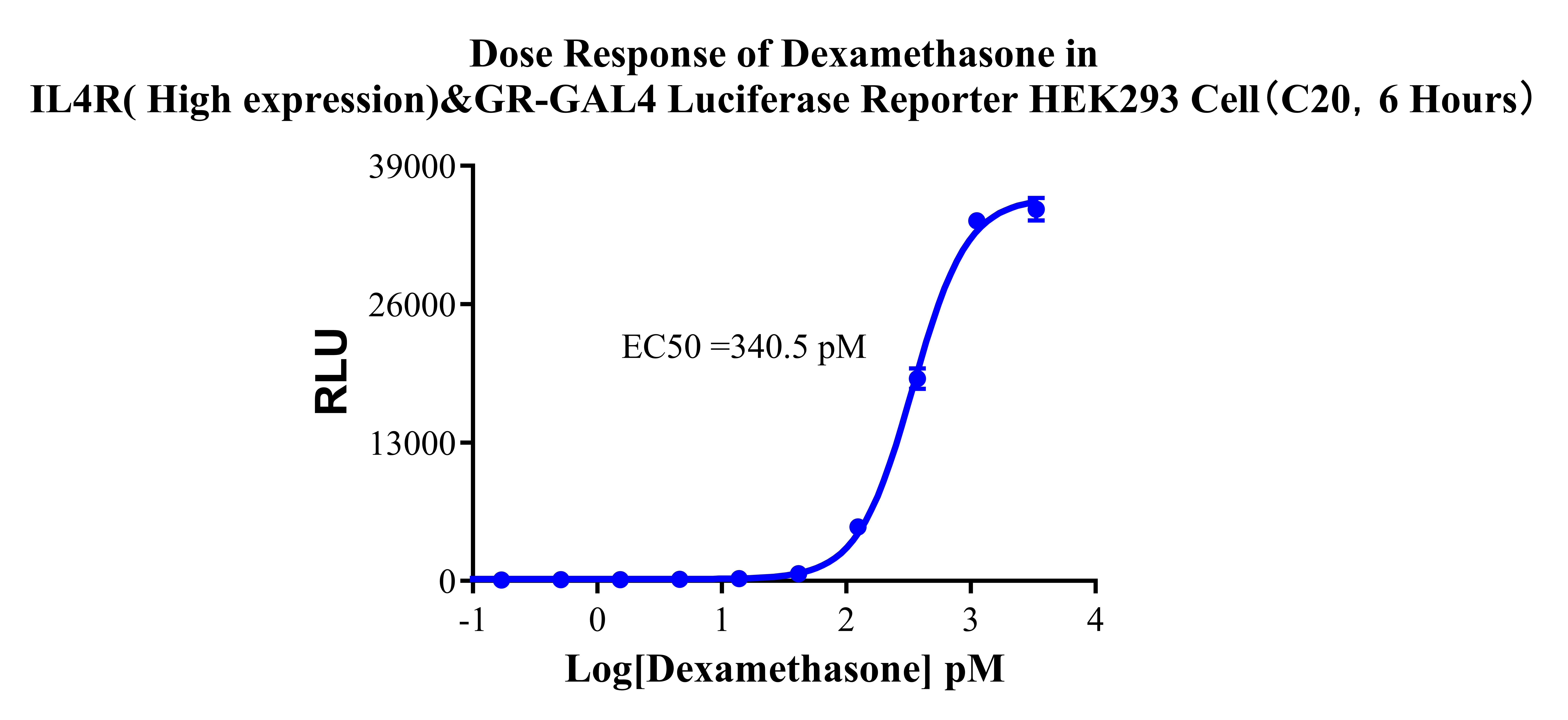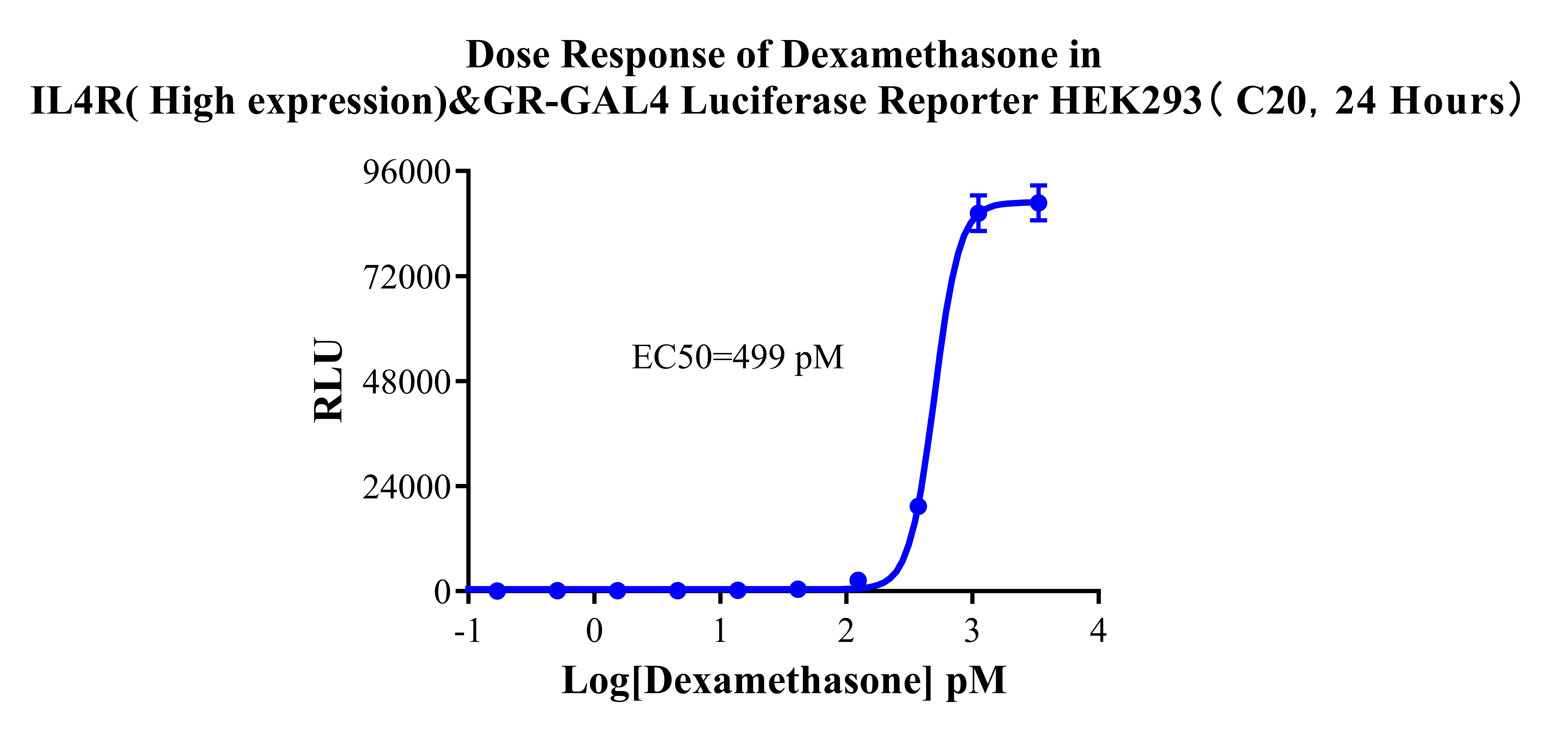Figure 2. Recombinant IL4R( High expression)&GR-GAL4 Luciferase Reporter HEK293 stably expressing IL4R.