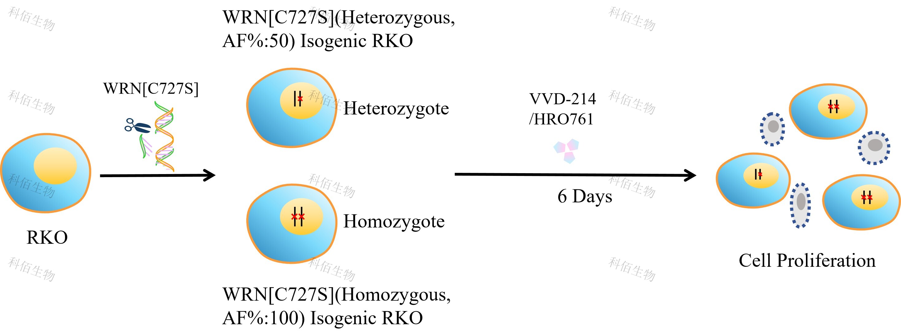 Figure 1. WRN[C727S](Homozygous,AF%:100) Isogenic RKO原理示意圖
