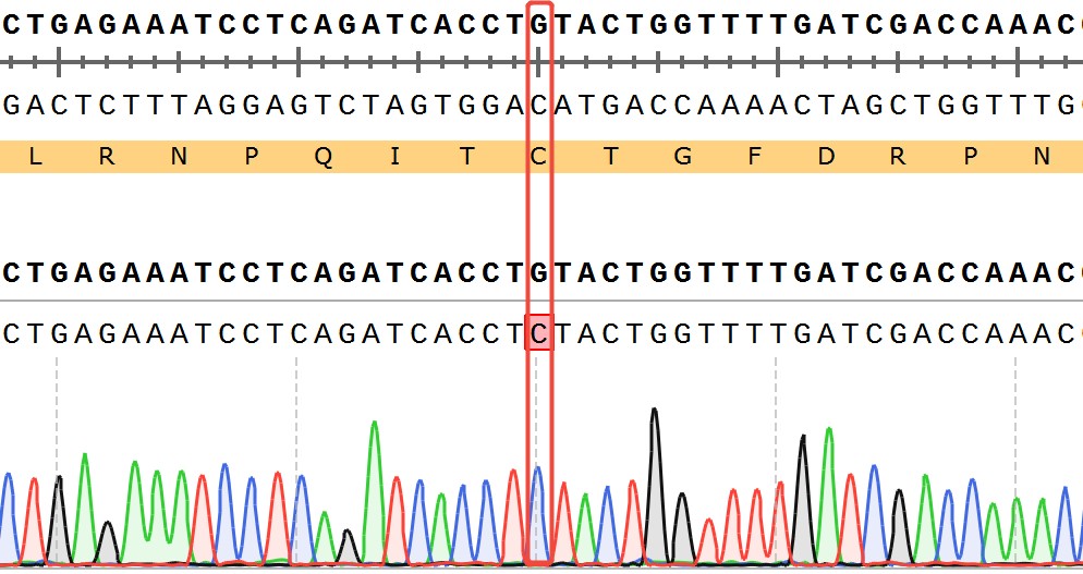 Figure 2. Sanger of WRN[C727S](Homozygous,AF%:100) Isogenic RKO.