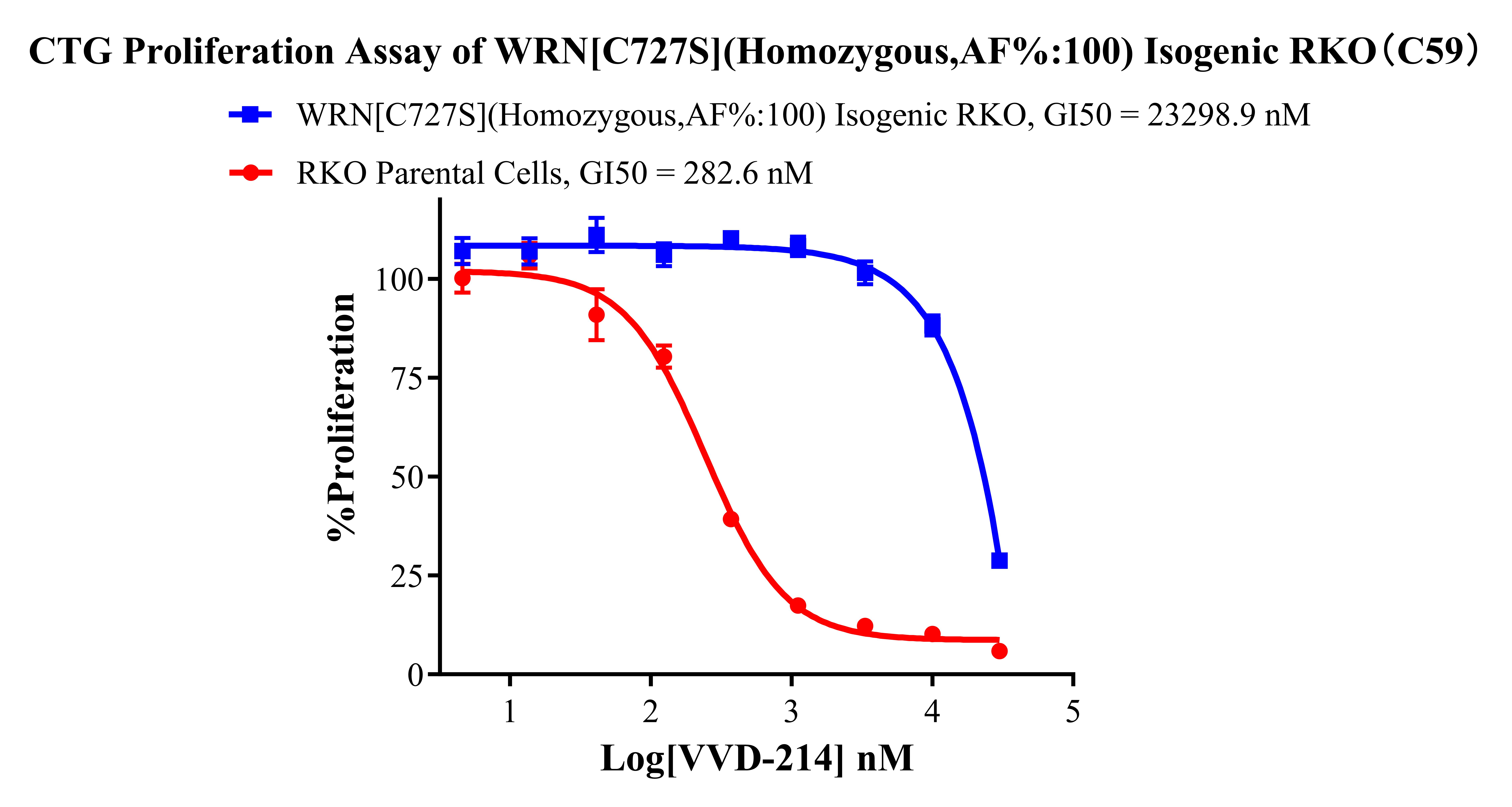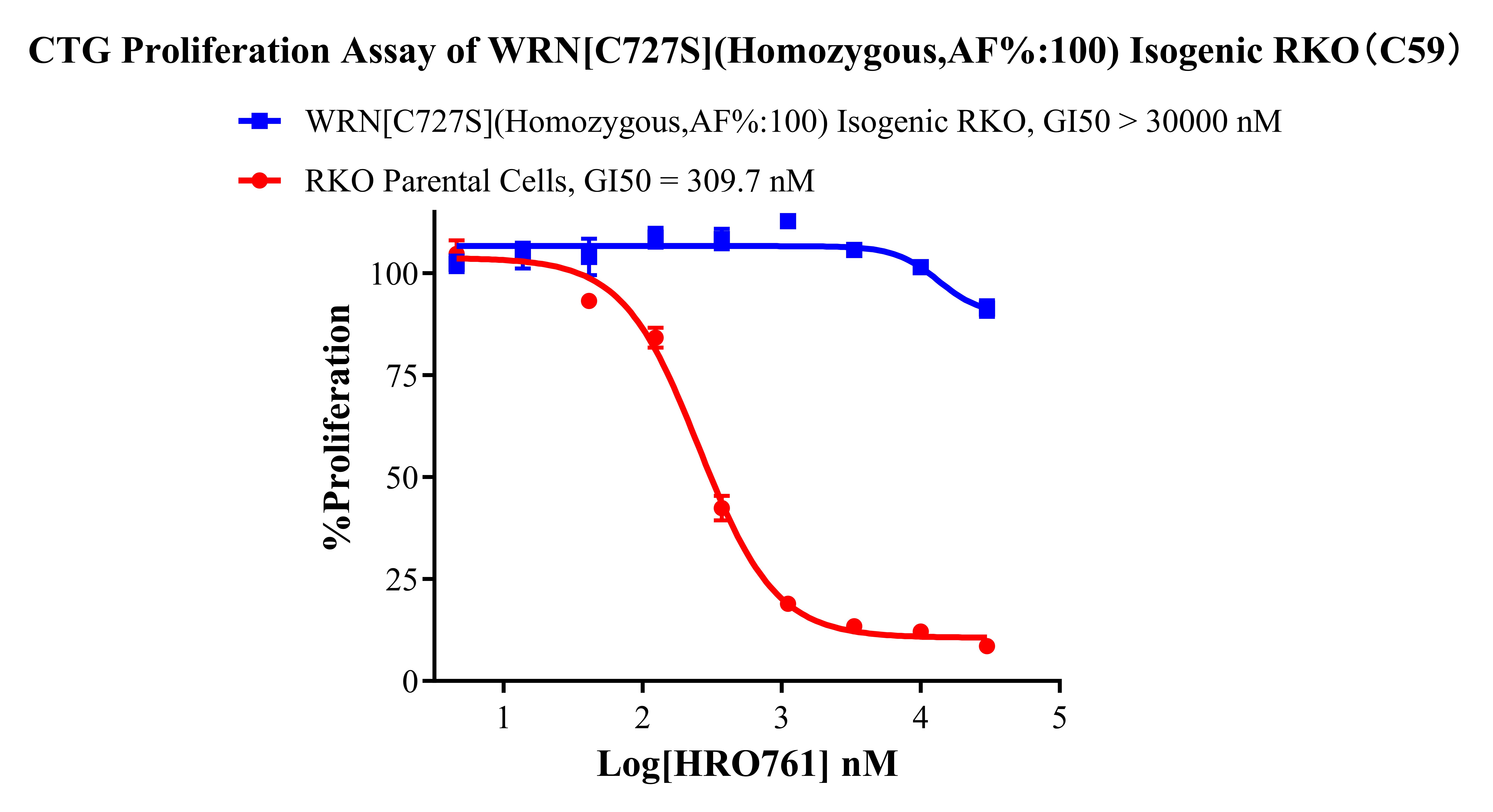 Figure 4. CTG Proliferation Assay of WRN[C727S](Homozygous,AF%:100) Isogenic RKO(C59).
