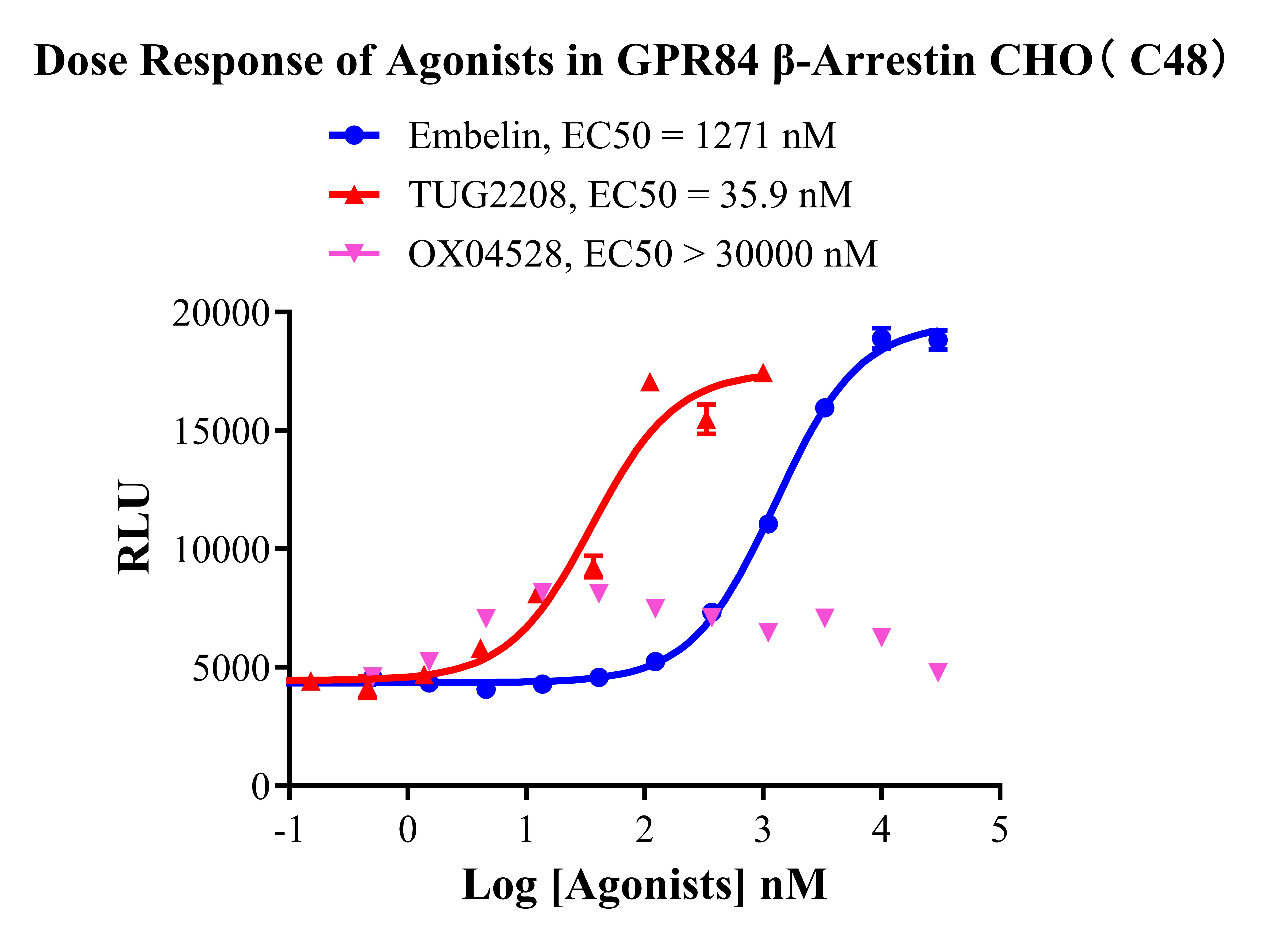 V. Representative Data![]() Figure 1. Dose Response of Agonists in GPR84 β-Arrestin CHO(C48). |