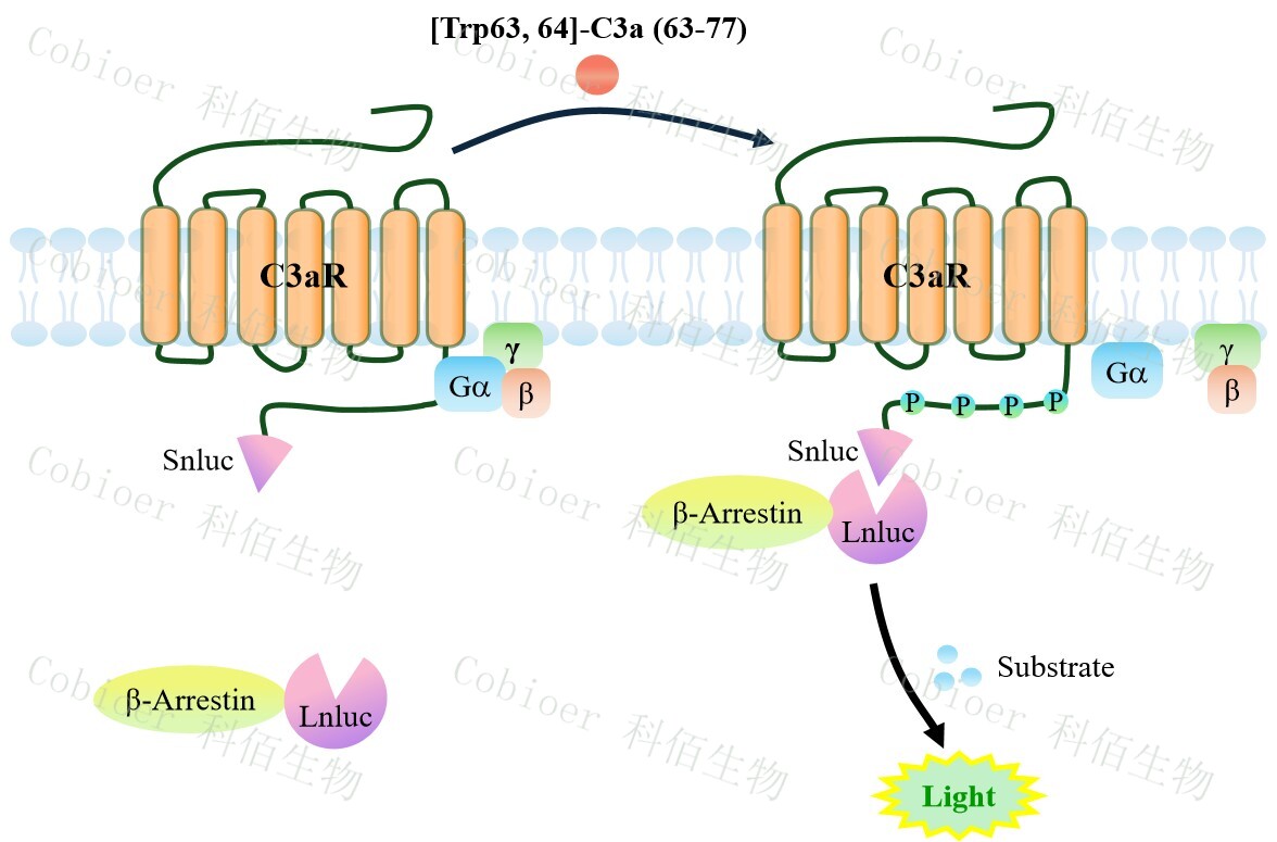 C3aR β-Arrestin CHO 報告基因藥靶模型很好的模擬了體內(nèi) C3aR/β-Arrestin 的信號轉導過程,原理見下圖所示。
