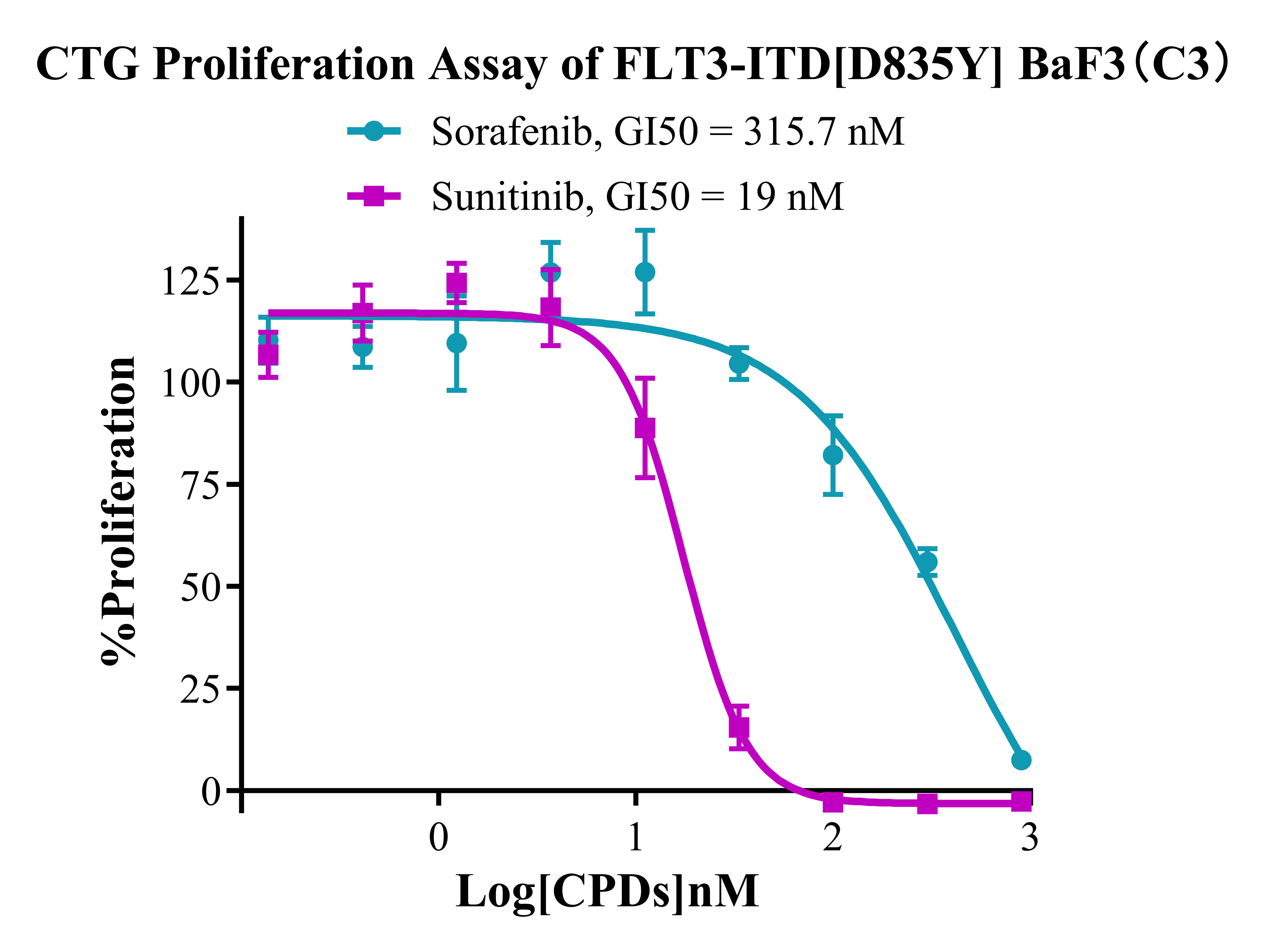 Figure 4. CTG Proliferation Assay of FLT3-ITD [D835Y] BaF3(C3). |