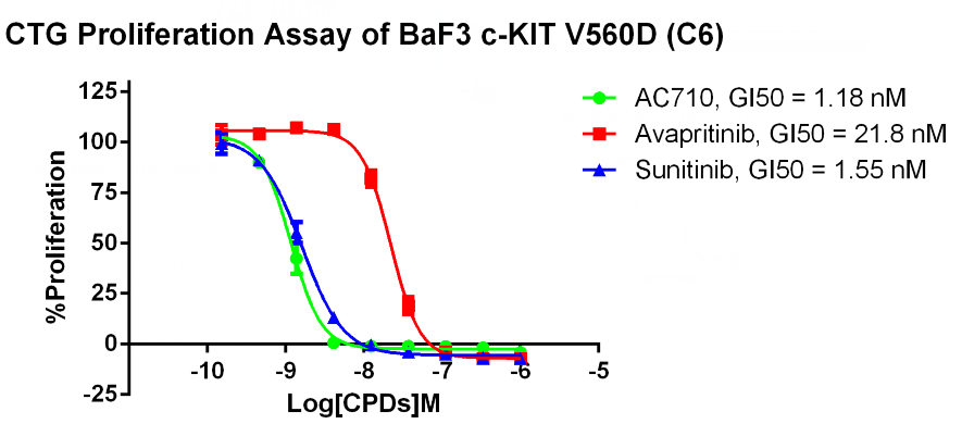Figure 3.  CTG Proliferation Assay of BaF3 C-KIT V560D (C6).