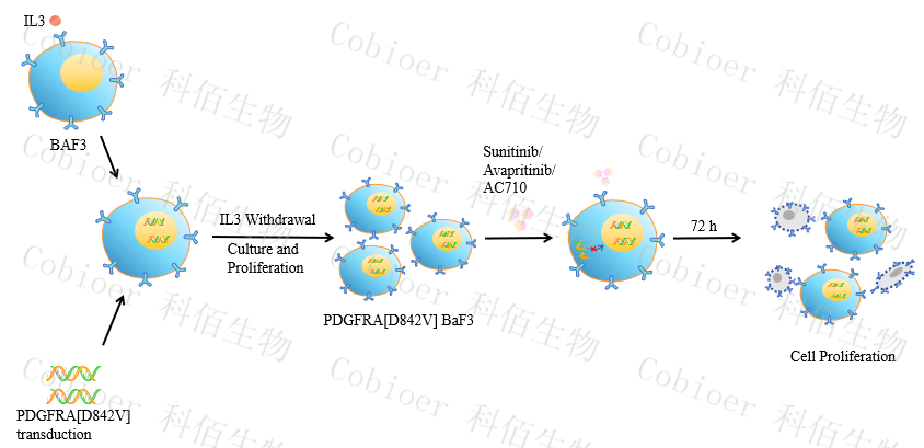 BaF3(小鼠原 B 細(xì)胞)的生長和增殖需要 IL-3 的維持。通過引入各種表達激酶的基因, 能作為 BaF3 的驅(qū)動基因,讓 BaF3 不再依賴 IL-3 而增殖,進而激酶基因成為 BaF3 增殖依 賴的驅(qū)動基因,用于評估小分子藥物對激酶的靶向抑制作用,原理及流程見下圖所示。