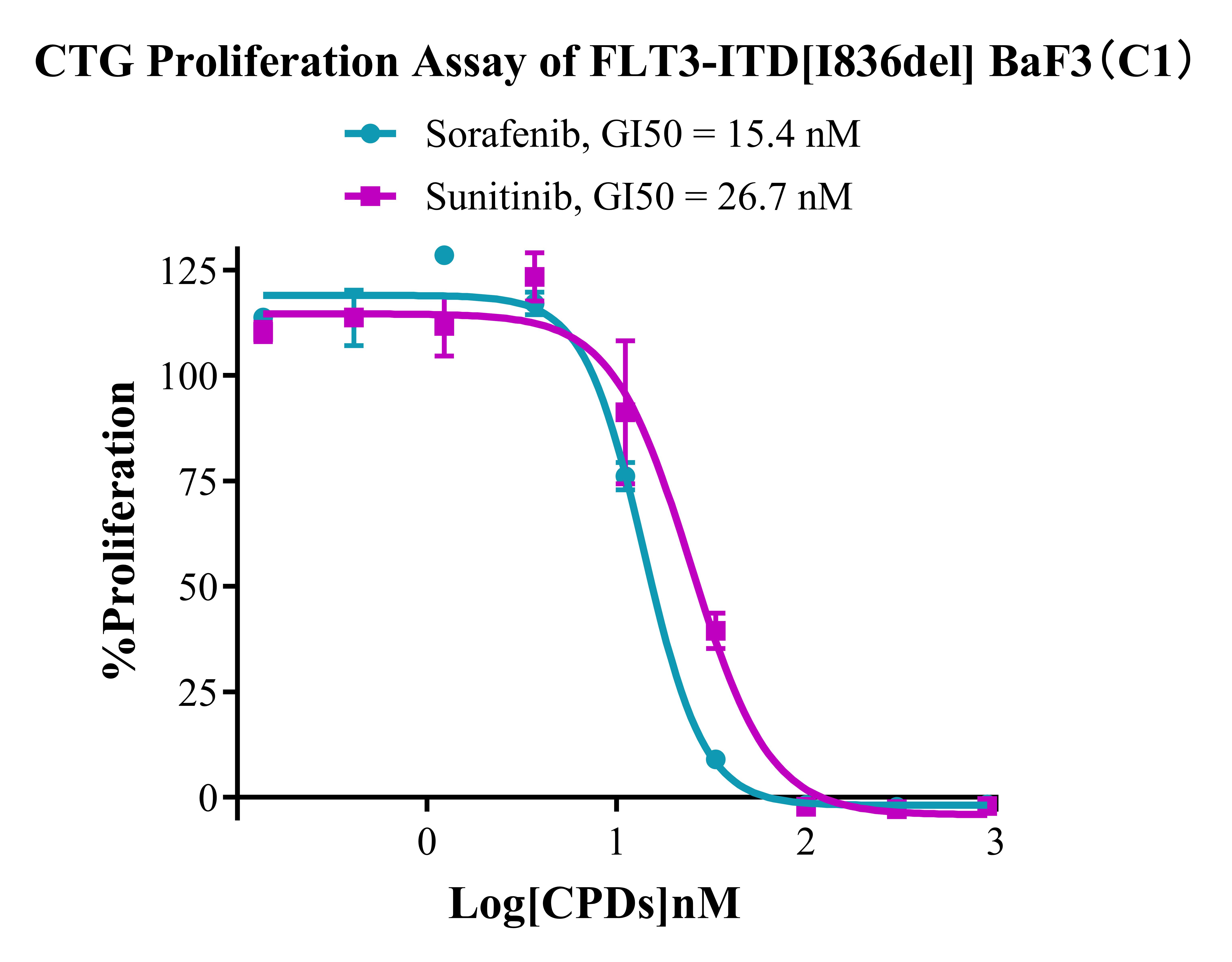 Figure 4. CTG Proliferation Assay of FLT3-ITD [I836del] BaF3(C1).