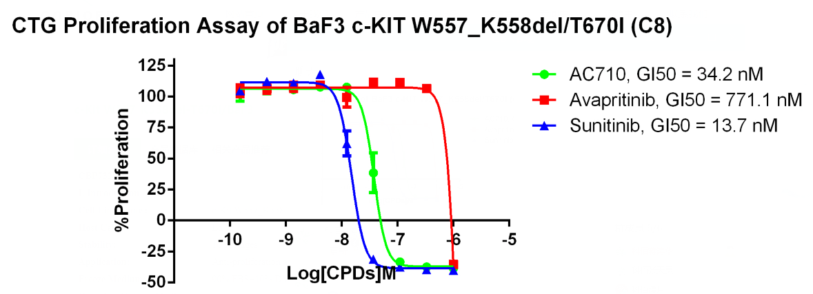 Figure 4. CTG Proliferation Assay of BaF3 C-KIT W557_ K558del/T670I (C8).