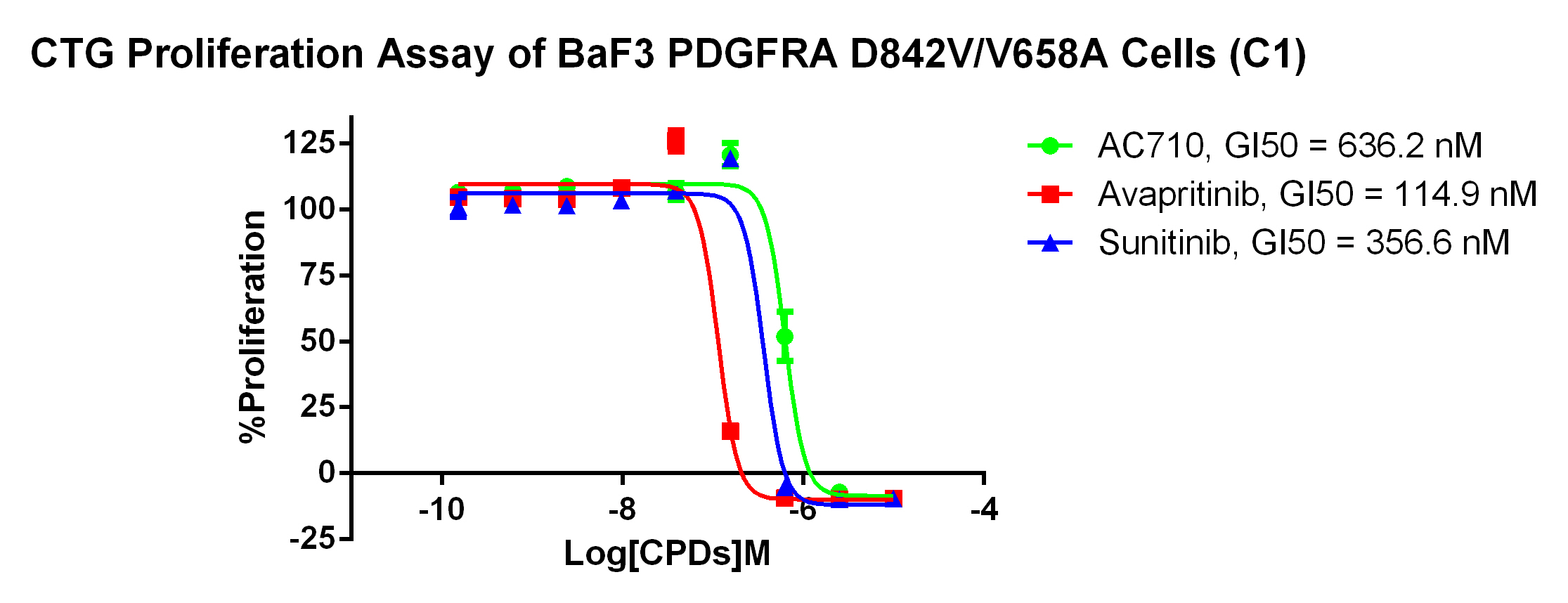 Figure 3. CTG Proliferation Assay of BaF3 PDGFRA D842V/V658A Cells (C1).