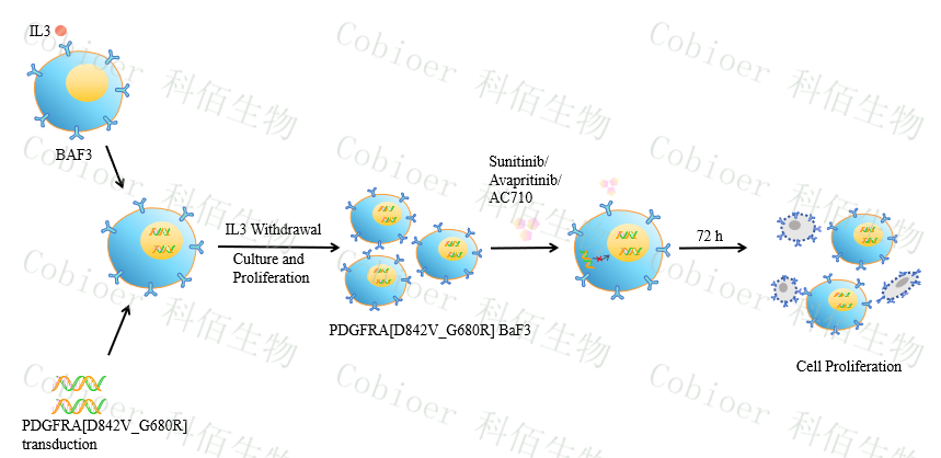 PDGFRA[D842V_G680R] BaF3 藥靶細胞,通過轉(zhuǎn)導突變狀態(tài)的 PDGFRA[D842V_G680R] 基因到 BaF3 細胞系中,穩(wěn)定表達人 突變形態(tài)下的 PDGFRA[D842V_G680R] 基因。