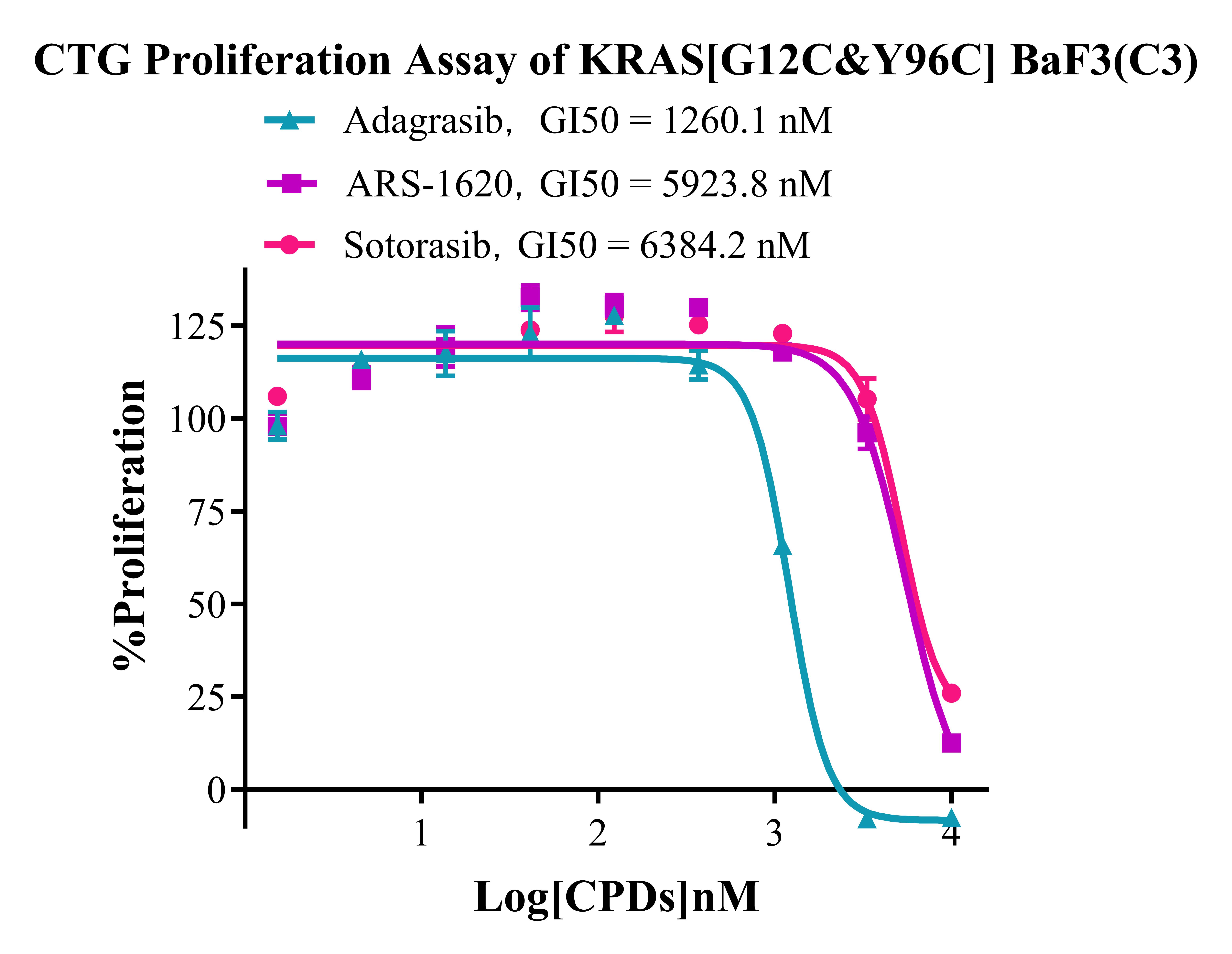 Figure 3. CTG Proliferation Assay of KRAS [G12C&Y96C] BaF3(C3).
