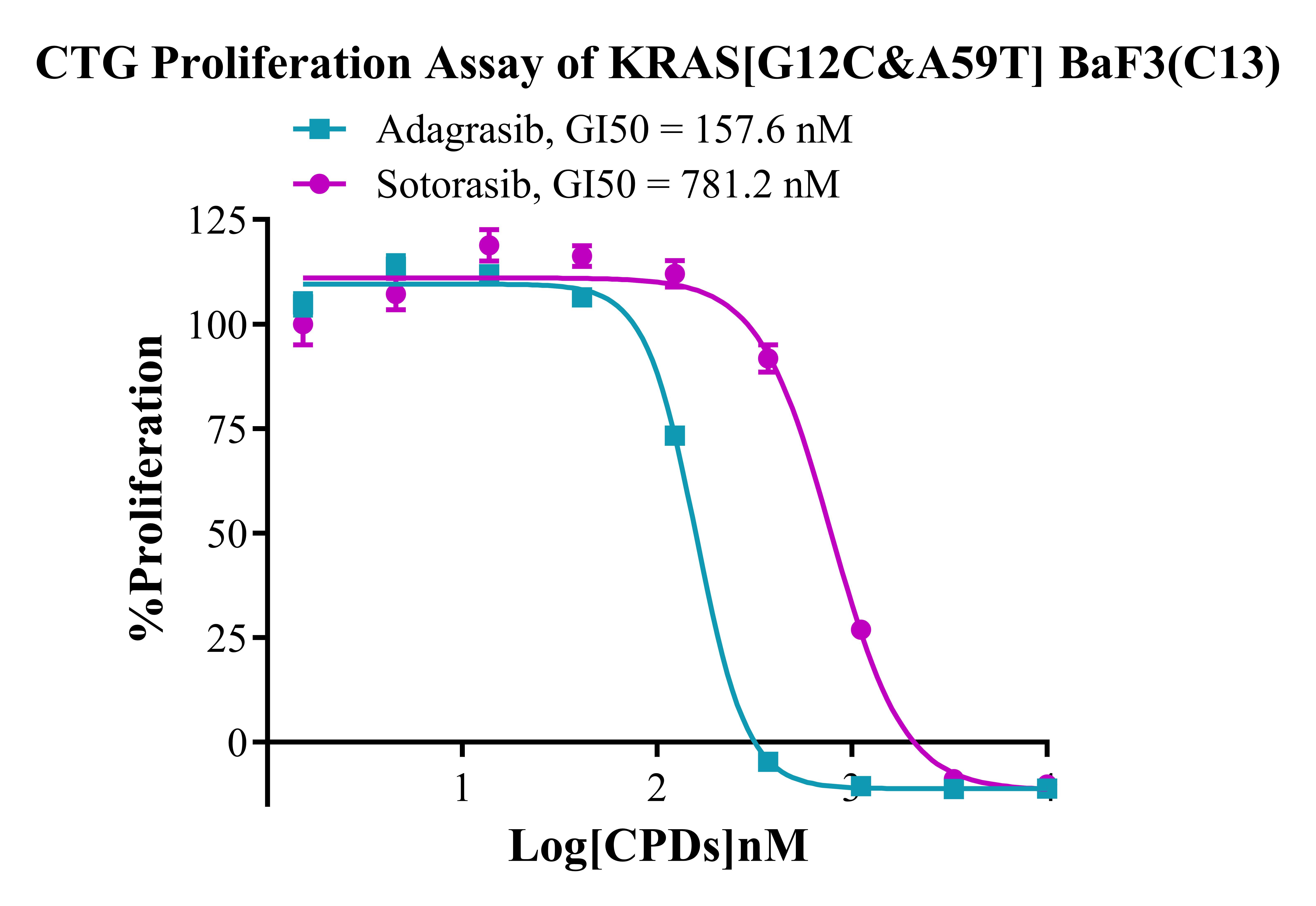 Figure 3. CTG Proliferation Assay of KRAS[G12C&A59T] BaF3 (C13).