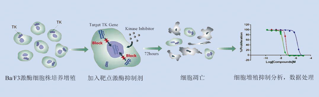 為了助力小分子藥物研發(fā),科佰開(kāi)發(fā)了BA/F3系列的激酶工程細胞株,EGFR/NTRKs/RET/BCR-ABL1/KRAS/BRAF/MET靶點(diǎn)等,用于評估藥物對激酶的靶向抑制作用。