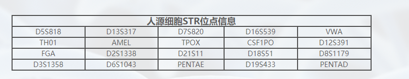 STR基因位點(diǎn)由長(cháng)度為3~7個(gè)堿基對的短串連重復序列組成,這些重復序列廣泛存在于人類(lèi)基因組中,可作為高度多態(tài)性標記,被稱(chēng)為細胞的DNA指紋,其可通過(guò)PCR(聚合酶鏈式反應)來(lái)檢測。STR基因座位上的等位基因可通過(guò)擴增區域內重復序列的拷貝數的不同來(lái)區分,在毛細管電泳分離之后可通過(guò)熒光檢測來(lái)識別。隨后通過(guò)一定的計算方法,即可根據所得的STR分型結果與專(zhuān)業(yè)的細胞STR數據庫比對從而推算出樣品所屬的細胞系或可能的交叉污染的細胞系名稱(chēng)。
