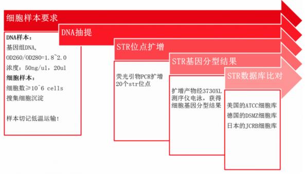 近年來(lái),大量研究表明 STR 基因分型 方法是進(jìn)行細胞交叉污染和性質(zhì)鑒定的最有效和準確的方法之一,STR基因分型應用于細胞鑒定已被ATCC等機構強烈推薦。美國的ATCC 細胞庫、德國的DSMZ細胞庫以及日本的JCRB細胞庫等為STR 分型提供了各細胞株的數據供比對。