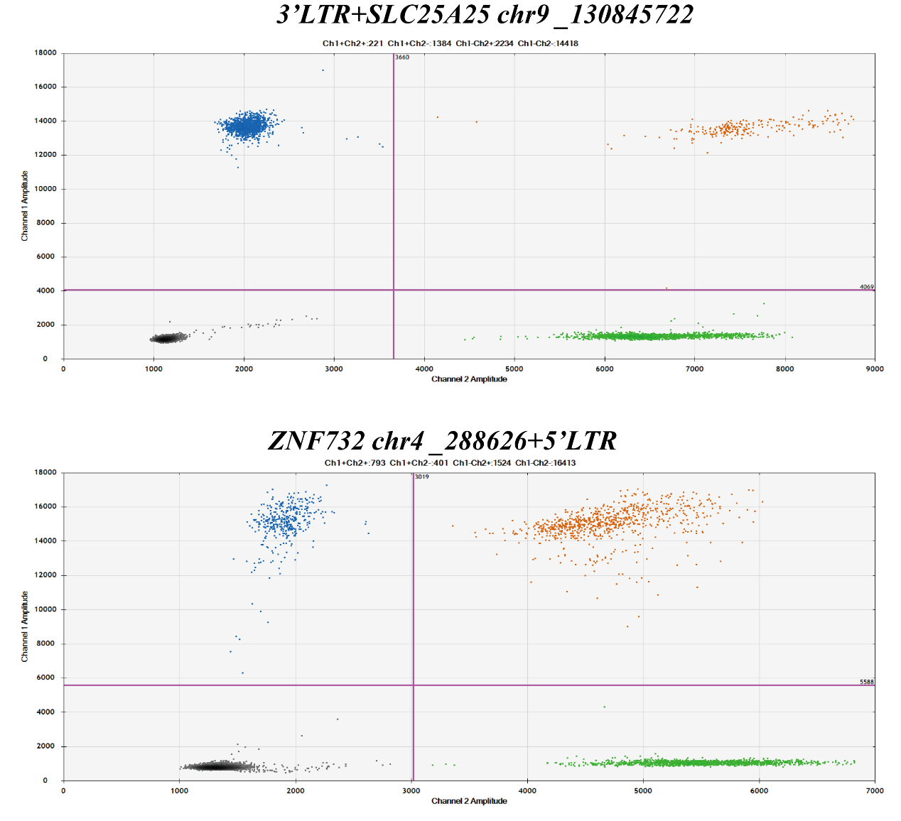五步正交驗證(NGS(整合關(guān)聯(lián)擴增技術(shù)(IAA,靶向捕獲, LAM-PCR)+ Sanger確認 + dPCR定量),確保位點(diǎn)序列與頻率的準確性。在驗證LTR整合基因組位點(diǎn)的基礎上,進(jìn)一步驗證了載體上其他基因序列在基因組上的非典型整合位點(diǎn)。