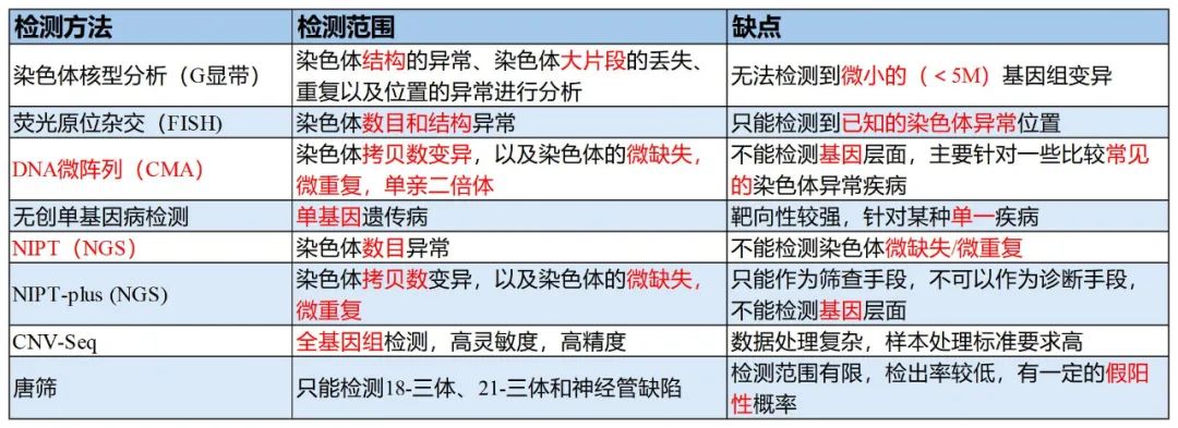 常見的篩查染色體異常的方法有G顯帶,熒光原位雜交(FISH),DNA微陣列(CMA),NIPT,NIPT-Plus,CNV-seq等。