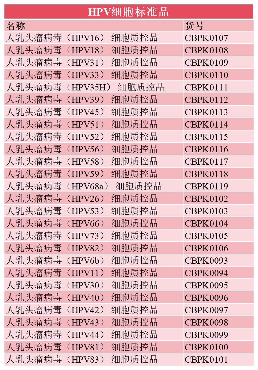 涵蓋18種高危型和9種低危型(并在持續更新中),可滿(mǎn)足市面試劑盒質(zhì)控需求;